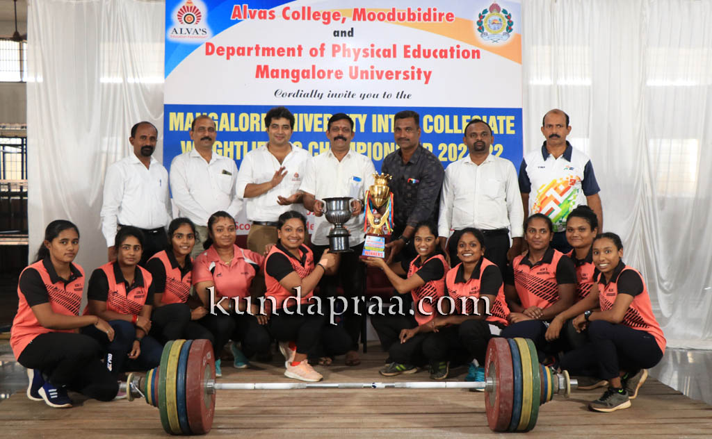 ಮಹಿಳೆಯರ 45ಕೆಜಿ ವಿಭಾಗದಲ್ಲಿ ಆಳ್ವಾಸ್ ಕಾಲೇಜಿನ ಯಾಸ್ಮಿನ್ (ಸ್ನಾö್ಯಚ್-33ಕೆ.ಜಿ. ಕ್ಲೀನ್&ಜರ್ಕ್-53ಕೆಜಿ ಒಟ್ಟು-88 ಕೆ.ಜಿ) ಪ್ರಥಮ, 49 ಕೆಜಿ ವಿಭಾಗದಲ್ಲಿ ಚಂದ್ರಿಕಾ (ಸ್ನಾö್ಯಚ್-34ಕೆ.ಜಿ. ಕ್ಲೀನ್&ಜರ್ಕ್-44ಕೆಜಿ ಒಟ್ಟು-78 ಕೆ.ಜಿ) ದ್ವಿತೀಯ, 55ಕೆಜಿ ವಿಭಾಗದಲ್ಲಿ ಲಕ್ಷಿö್ಮÃ (ಸ್ನಾö್ಯಚ್-69ಕೆ.ಜಿ. ಕ್ಲೀನ್&ಜರ್ಕ್-91ಕೆಜಿ ಒಟ್ಟು-160 ಕೆ.ಜಿ) ಪ್ರಥಮ, 59ಕೆಜಿ ವಿಭಾಗದಲ್ಲಿ ಅರ್ಚನಾ ಡೆನ್ಸಿ (ಸ್ನಾö್ಯಚ್-45ಕೆ.ಜಿ. ಕ್ಲೀನ್&ಜರ್ಕ್-60ಕೆಜಿ ಒಟ್ಟು-105 ಕೆ.ಜಿ) ತೃತೀಯ, 64ಕೆಜಿ ವಿಭಾಗದಲ್ಲಿ ಲಾವಣ್ಯಾ ರೈ (ಸ್ನಾö್ಯಚ್-58ಕೆ.ಜಿ. ಕ್ಲೀನ್&ಜರ್ಕ್-65ಕೆಜಿ ಒಟ್ಟು-123 ಕೆ.ಜಿ) ದ್ವಿತೀಯ, 71ಕೆಜಿ ವಿಭಾಗದಲ್ಲಿ ತನುಷಾ (ಸ್ನಾö್ಯಚ್-76ಕೆ.ಜಿ. ಕ್ಲೀನ್&ಜರ್ಕ್-105ಕೆಜಿ ಒಟ್ಟು-181 ಕೆ.ಜಿ) ಪ್ರಥಮ, 81ಕೆಜಿ ವಿಭಾಗದಲ್ಲಿ ಯಶಸ್ವಿನಿ (ಸ್ನಾö್ಯಚ್-65ಕೆ.ಜಿ. ಕ್ಲೀನ್&ಜರ್ಕ್-85ಕೆಜಿ ಒಟ್ಟು-150 ಕೆ.ಜಿ) ಪ್ರಥಮ, 87ಕೆಜಿ ವಿಭಾಗದಲ್ಲಿ ನಿಶ್ಮಿತಾ (ಸ್ನಾö್ಯಚ್-64ಕೆ.ಜಿ. ಕ್ಲೀನ್&ಜರ್ಕ್-78ಕೆಜಿ ಒಟ್ಟು-142 ಕೆ.ಜಿ) ಪ್ರಥಮ, 87+ಕೆಜಿ ವಿಭಾಗದಲ್ಲಿ ಸಿತಾರಾ (ಸ್ನಾö್ಯಚ್-66ಕೆ.ಜಿ. ಕ್ಲೀನ್&ಜರ್ಕ್-77ಕೆಜಿ ಒಟ್ಟು-143ಕೆ.ಜಿ) ಪ್ರಥಮ ಸ್ಥಾನ ಪಡೆದಿದ್ದಾರೆ. ಆಳ್ವಾಸ್ನ ಲಕ್ಷಿö್ಮÃ ಮಹಿಳಾ ಬೆಸ್ಟ್ ಲಿಫ್ಟರ್ ಆಗಿ ಹೊರಹೊಮ್ಮಿದ್ದಾರೆ.