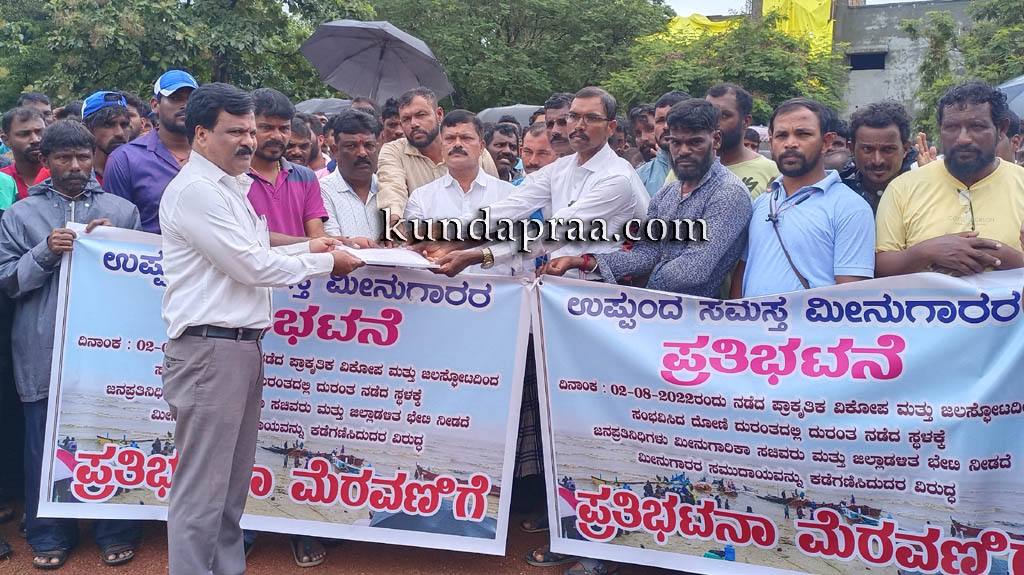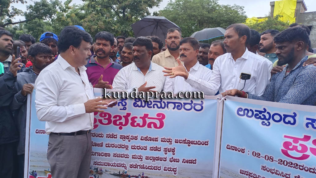 ಅಗಸ್ಟ್ 2ರಂದು ಶಿರೂರು ಭಾಗದಲ್ಲಿ ನಡೆದ ಜಲಸ್ಪೋಟದಂತಹ ಪ್ರಾಕೃತಿಕ ವಿಕೋಪದಿಂದಾಗಿ ಮೀನುಗಾರರು ಸಾಕಷ್ಟು ನಷ್ಟ ಅನುಭವಿದ ಸಂದರ್ಭ ಅವರಿಗೆ ಸ್ಪಂದಿಸದೇ ಮೀನುಗಾರ ಸಮುದಾಯವನ್ನು ಕಡೆಗಣಿಸಿದ ಅಧಿಕಾರಿಗಳು, ಜನಪ್ರತಿನಿಧಿಗಳು ಹಾಗೂ ಸರಕಾರದ ನಡೆಯನ್ನು ಖಂಡಿಸಿ ಉಪ್ಪುಂದ ಭಾಗದ ಮೀನುಗಾರರು ಶುಕ್ರವಾರ ಬೈಂದೂರು ತಾಲೂಕು ಕಛೇರಿ ಮುಂಭಾಗದಲ್ಲಿ ಹಮ್ಮಿಕೊಂಡ ಪ್ರತಿಭಟನೆಯನ್ನು ಉದ್ದೇಶಿಸಿ ಅವರು ಮಾತನಾಡಿದರು.