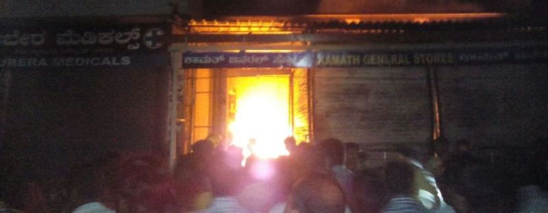ಸಿದ್ದಾಪುರದ ‘ಕಾಮತ್ ಜನರಲ್ ಸ್ಟೋರ್’ ಬೆಂಕಿಗೆ ಆಹುತಿಯಾದ ಅಂಗಡಿಯಾಗಿದೆ. ಶಾರ್ಟ್ ಸರ್ಕ್ಯೂಟ್ ನಿಂದ ಬೆಂಕಿ ಹೊತ್ತಿಕೊಂಡು ಸಂಪೂರ್ಣ ಅಂಗಡಿಯನ್ನು ಆವರಿಸಿದೆ ಎಂದು ಶಂಕಿಸಲಾಗಿದೆ. ಸಿದ್ದಾಪುರ ಪೇಟೆಯಲ್ಲಿರುವ ಈ ಅಂಗಡಿಯಲ್ಲಿ ದಿನಬಳಕೆಯ ವಸ್ತುಗಳಲ್ಲದೆ, ಹಲವಾರು ಗೃಹೋಪಯೋಗಿ ವಸ್ತುಗಳನ್ನು ಮಾರಾಟಕ್ಕೆ ಇಡಲಾಗುತ್ತಿತ್ತು. ಶುಕ್ರವಾರ ರಾತ್ರಿ 11.30 ರ ವೇಳೆ ಶಾರ್ಟ್ ಸರ್ಕ್ಯೂಟ್ ಸಂಭವಿಸಿದ್ದು ಕ್ಷಣಾರ್ಧದಲ್ಲಿ ಬೆಂಕಿ ಕೆನ್ನಾಲಗೆ ಅಂಗಡಿಯನ್ನು ಸಂಪೂರ್ಣ ಭಸ್ಮ ಮಾಡಿದೆ. ರವೀಂದ್ರನಾಥ್ ಕಾಮತ್ ಒಡೆತನದ ಈ ಅಂಗಡಿ ಇರುವ ಕಟ್ಟಡಕ್ಕೂ ಹಾನಿಯಾಗಿದೆ.
