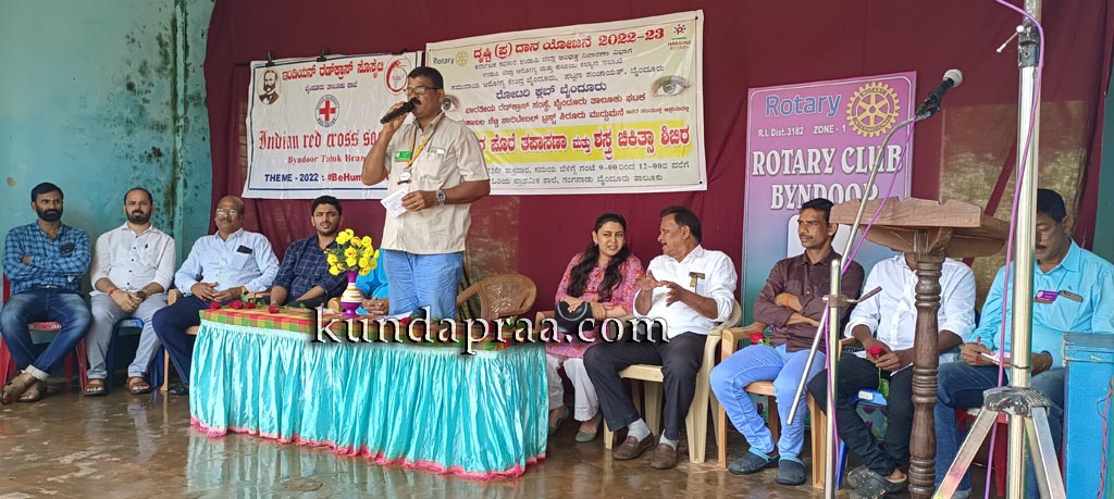 ಅವರು ರೋಟರಿ ಕ್ಲಬ್ ಬೈಂದೂರು ನೇತೃತ್ವದಲ್ಲಿ, ದೃಷ್ಟಿ (ಪ್ರ)ದಾನ ಯೋಜನೆ 2022-22 ಜಿಲ್ಲಾ ಆರೋಗ್ಯ ಮತ್ತು ಕುಟುಂಬ ಕಲ್ಯಾಣ ಇಲಾಖೆ, ಸಮುದಾಯ ಆರೋಗ್ಯ ಕೇಂದ್ರ ಬೈಂದೂರು, ಭಾರತೀಯ ರೆಡ್ ಕ್ರಾಸ್ ಬೈಂದೂರು ಘಟಕ ಹಾಗೂ ಪಾರ್ವತಿ ಮಹಾಬಲ ಶೆಟ್ಟಿ ಚಾರಿಟೇಬಲ್ ಟ್ರಸ್ಟ್ ಶಿರೂರು – ಮುದ್ದುಮನೆ ಸಂಯುಕ್ತ ಆಶ್ರಯದಲ್ಲಿ ಶುಕ್ರವಾರ ಗಂಗಾನಾಡು ಸರಕಾರಿ ಹಿರಿಯ ಪ್ರಾಥಮಿಕ ಶಾಲಾ ಆವರಣದಲ್ಲಿ ಆಯೋಜಿಸಲಾದ ಉಚಿತ ನೇತ್ರ ತಪಾಸಣಾ ಹಾಗೂ ಶಸ್ತ್ರ ಚಿಕಿತ್ಸಾ ಶಿಬಿರದವನ್ನುಉದ್ಘಾಟಿಸಿ ಮಾತನಾಡಿದರು.