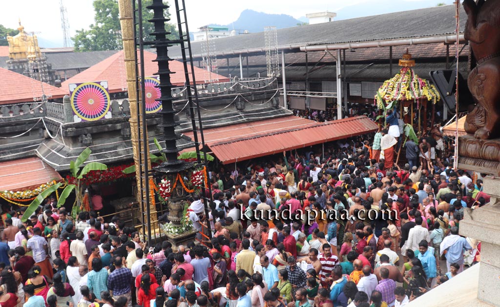 ನವರಾತ್ರಿ ಒಂಬತ್ತು ದಿನಗಳ ಕಾಲ ವಿವಿಧ ಪೂಜೆ ಹಾಗೂ ಧಾರ್ಮಿಕ ಆಚರಣೆಗಳು ಸಾಂಗವಾಗಿ ನೆರವೇರಿದ್ದು, ಮಹಾನವಮಿಯ ಮಧ್ಯಾಹ್ನ ಬಲಿ ಸೇವೆ ಹಾಗೂ ಪ್ರದಕ್ಷಿಣಿ ನಡೆಸಿದ ಬಳಿಕ ಶ್ರೀ ದೇವಿಯ ಉತ್ಸವ ಮೂರ್ತಿಯನ್ನು ಅಲಂಕರಿಸಿದ ಮರದ ಪುಷ್ಪ ರಥದಲ್ಲಿ ಕುಳ್ಳಿರಿಸಲಾಯಿತು.