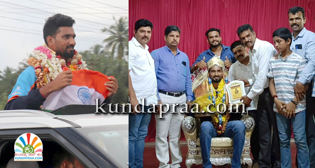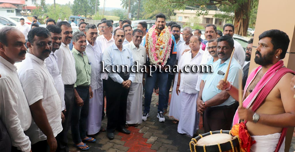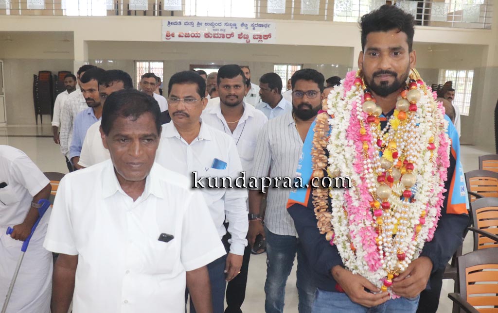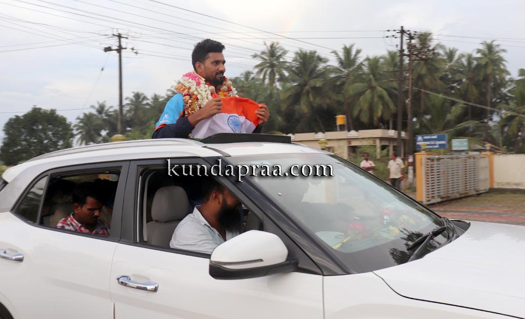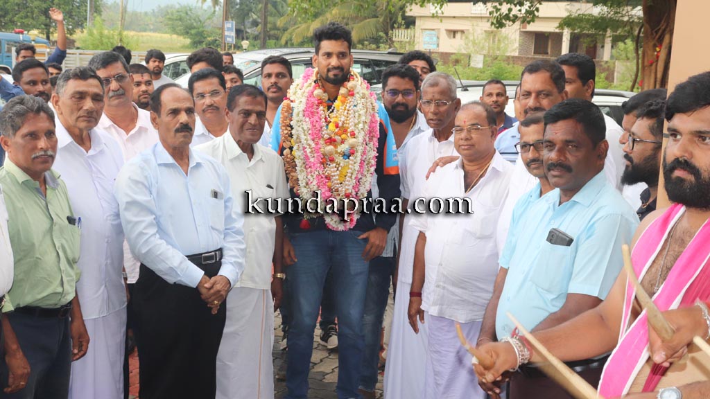 ಕುಂದಾಪುರ/ಬೈಂದೂರು: ಯುಎಇನಲ್ಲಿ ನಡೆದ ಅಂತರಾಷ್ಟ್ರೀಯ ಕಿವುಡರ ಟಿ-20 ಕ್ರಿಕೆಟ್ ಚಾಂಪಿಯನ್ಶಿಪ್ನಲ್ಲಿ ಡಿಐಸಿಸಿ ಟಿ-20 ಚಾಂಪಿಯನ್ ಟ್ರೋಫಿ 2022 ವಿಜೇತ ಭಾರತ ಕಿವುಡರ ಕ್ರಿಕೆಟ್ ತಂಡದ ಸದಸ್ಯ, ಕರ್ನಾಟಕದಿಂದ ಆಯ್ಕೆಯಾದ ಏಕಮಾತ್ರ ಆಟಗಾರ ಪ್ರಥ್ವಿರಾಜ್ ಶೆಟ್ಟಿ ಅವರು ಭಾನುವಾರ ಹುಟ್ಟೂರಿಗೆ ಮರಳುವ ವೇಳೆ ಕುಂದಾಪುರ ಹಾಗೂ ಬೈಂದೂರಿನಲ್ಲಿ ಅದ್ದೂರಿಯಾಗಿ ಸ್ವಾಗತಿಸಿಕೊಳ್ಳಲಾಯಿತು.