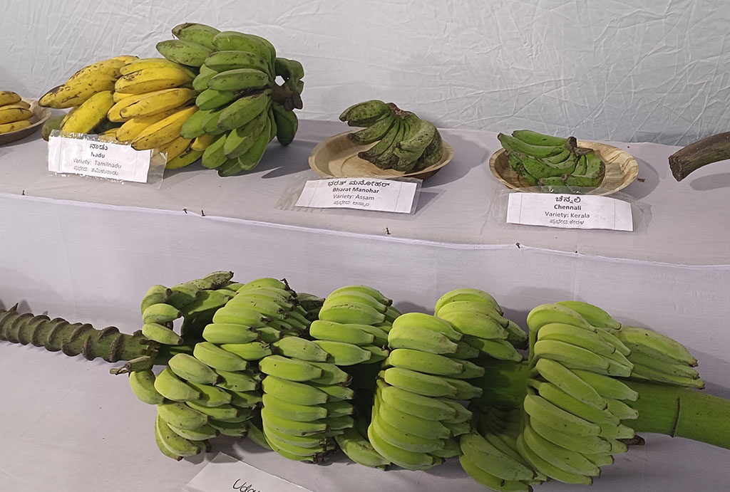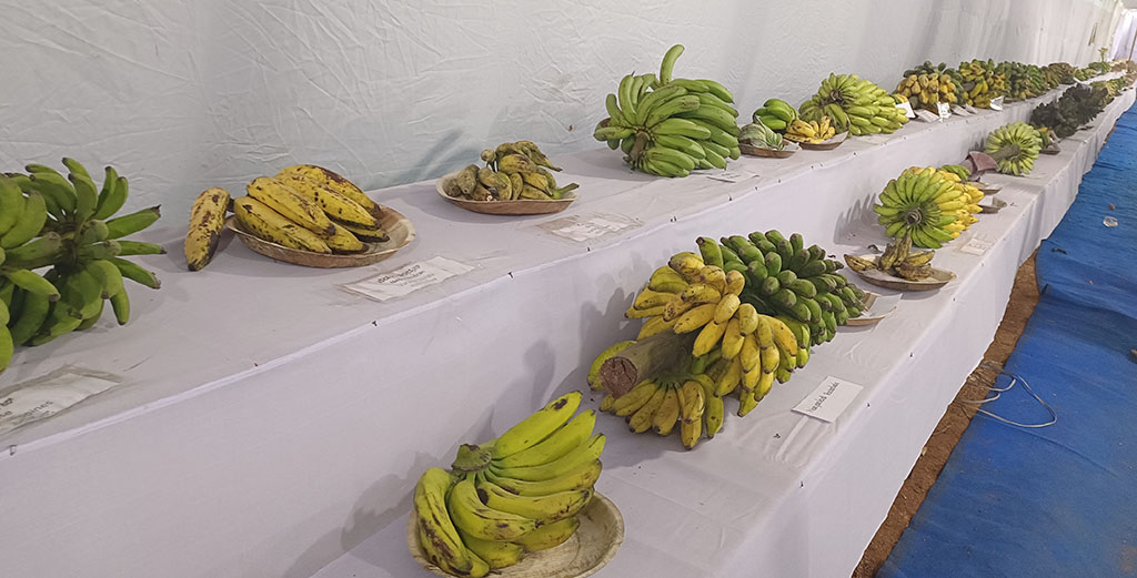ಕೇರಳ ಮೂಲದ ವಿನೋದ್ ಅವರು ಕೃಷಿಮೇಳದ ಸ್ಟಾಲ್ನಲ್ಲಿ ನೂರಕ್ಕೂ ಹೆಚ್ಚು ಪ್ರಬೇಧದ ಬಾಳೆ ಹಣ್ಣುಗಳನ್ನು ಪ್ರದರ್ಶನಕ್ಕಿಟ್ಟಿದ್ದಾರೆ. ಪಿಡಿ ಮೂಂಥಂ, ಬಾರ್ಗಿ, ಕೋಟಿಯ, ಮೈಸೂರ್ ಬಾಳೆ, ಲೇಡಿಸ್ ಫಿಂಗರ್ ಬಾಳೆ, ಸಾವಿರ ಫಿಂಗರ್ ಬಾಳೆ, ಬಸರೈ, ಸಿವಿ ರೋಜ್, ಚೋರಾ ಪೋವನ್, ಮತ್ತಿ, ಎನ್ ಸಿ ಆರ್ ೧೭, ಕಾವೇರಿ ಕಲ್ಕಿ, ಯಂಗಂಬಿ, ಹೋಂಡ, ಹೀಗೆ ಸಂಪ್ರದಾಯಿಕ ದೇಶಿ ವೀದೇಶಿ ಬಾಳೆ ಹಣ್ಣುಗಳು ಎಲ್ಲರನ್ನು ಆಕರ್ಷಿಸಿತು. ಒಂದೇ ಗೋನೆಯಲ್ಲಿ ಸಾವಿರ ಹಣ್ಣುಗಳು ಬಿಡುವ ಸಾವಿರ ಫಿಂಗರ್ ಬಾಳೆಗೊನೆ ಪ್ರದರ್ಶನದಲ್ಲಿ ಗಮನ ಸೆಳೆಯಿತು.