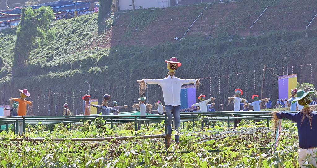 ಹುಲ್ಲಿನಿಂದ ತಯಾರಿಸಿದ ಗೊಂಬೆಗಳಿಗೆ ಮಡಕೆಯ ಮುಖವಾಡವನ್ನು ಹಾಕಿ ಅದಕ್ಕೆ ಟೋಪಿಯನ್ನು ಹಾಕಿ ಅಲಂಕಾರ ಮಾಡಿ ನಿಲ್ಲಿಸಿರುವ ಭಂಗಿ ನೋಡುಗರಿಗೆ ಜೀವಂತ ವ್ಯಕ್ತಿ ತೋಟದ ಕಾವಲಿಗೆ ನಿಂತಂತಿತ್ತು. ಒಂದೆಡೆ ವಿಭಿನ್ನರೀತಿಯ ತರಕಾರಿಗಳು ನೋಡುಗರನ್ನು ಆಕರ್ಷಿಸಿದರೆ ಮತ್ತೊಂದೆಡೆ ಈ ಬೆದರು ಗೊಂಬೆಗಳು ಜನರನ್ನು ಆಕರ್ಷಿಸುವ ಮೂಲಕ ಜಾಂಬೂರಿಯ ಸೌಂದರ್ಯವನ್ನು ಇಮ್ಮಡಿಗೊಳಿಸಿದವು.