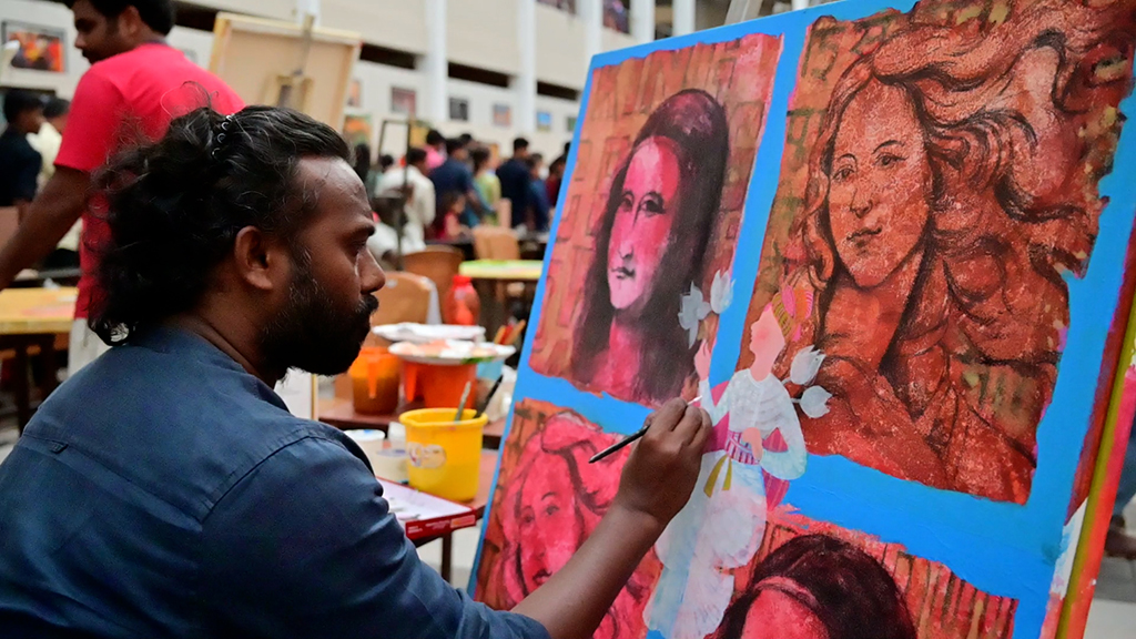 ಇಲ್ಲಿ ದೇಶದ ಮೂಲೆ-ಮೂಲೆಗಳಿಂದ ಆಗಮಿಸಿರುವ ಖ್ಯಾತನಾಮ ಕಲಾಕಾರರ ಮೌಲಿಕ ಸಂದೇಶ ಸಾರುವ ಕಲಾಕೃತಿಗಳು ಪ್ರದರ್ಶಿಸಲ್ಪಡುತ್ತಿವೆ. ಒಬ್ಬೊಬ್ಬರ ಕಣ್ಣಿಗೆ ಒಂದೊಂದು ಬಗೆಯಲ್ಲಿ ಕಾಣಬಹುದಾದ ಚಿತ್ರಗಳು ಕಲಾ ವಿಮರ್ಶಕರ ಮೆಚ್ಚುಗೆಗೆ ಪಾತ್ರವಾಗಿವೆ.