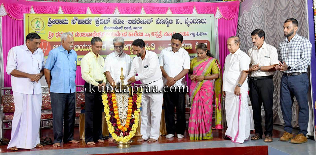 ಗೋಳಿಹೊಳೆ ಮೂರ್ಕೈ ಶ್ರೀ ಮಹಿಷಮರ್ಧಿನಿ ಸಭಾಂಗಣದಲ್ಲಿ ಸೋಮವಾರ ಬೈಂದೂರು ಶ್ರೀರಾಮ ಸೌಹಾರ್ದ ಕ್ರೆಡಿಟ್ ಕೋ-ಆಪರೇಟಿವ್ ಸೊಸೈಟಿ ಇದರ ಗೊಳಿಹೊಳೆ ಶಾಖೆ ಹಾಗೂ ಶ್ರೀ ಧರ್ಮಸ್ಥಳ ಮಂಜುನಾಥೇಶ್ವರ ಆಯುರ್ವೇದ ಕಾಲೇಜು ಮತ್ತು ಆಸ್ಪತ್ರೆ ಕುತ್ಪಾಡಿ ಉಡುಪಿ ಸಹಯೋಗದೊಂದಿಗೆ ನಡೆದ ಉಚಿತ ಆಯುರ್ವೇದ ಆರೋಗ್ಯ ಮಾಹಿತಿ ಮತ್ತು ತಪಾಸಣಾ ಶಿಬಿರದಲ್ಲಿ ಆರೋಗ್ಯ ಮಾಹಿತಿ ನೀಡಿದರು.