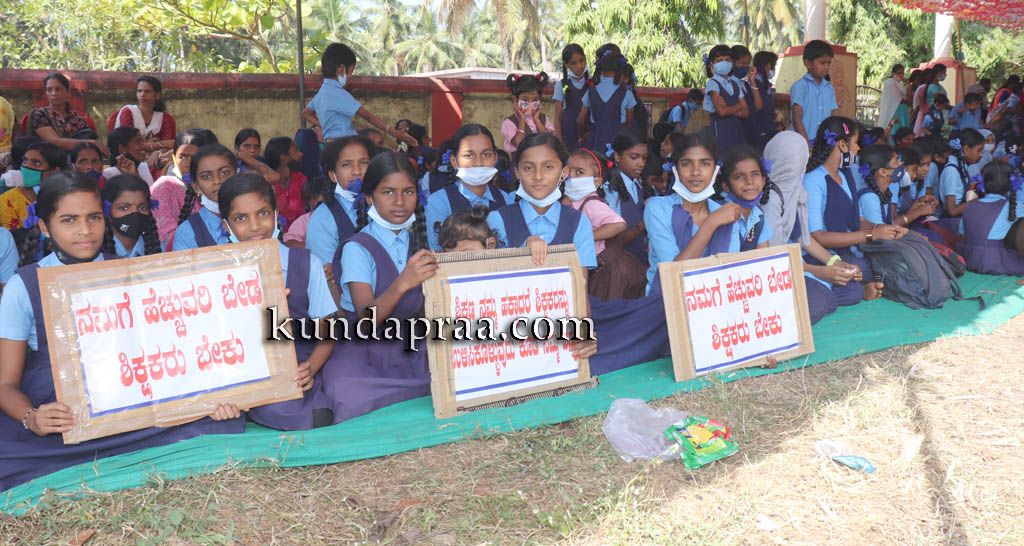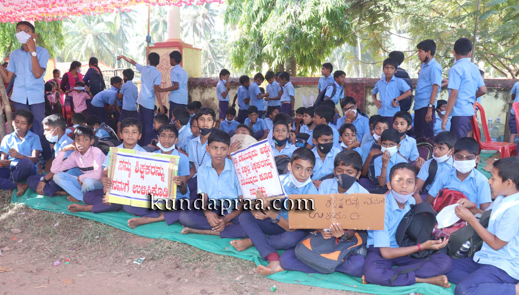 ಮಕ್ಕಳಿಂದ ಶಾಲಾ ಗೇಟ್ ಹೊರಗೆ ಪ್ರತಿಭಟನೆ:
