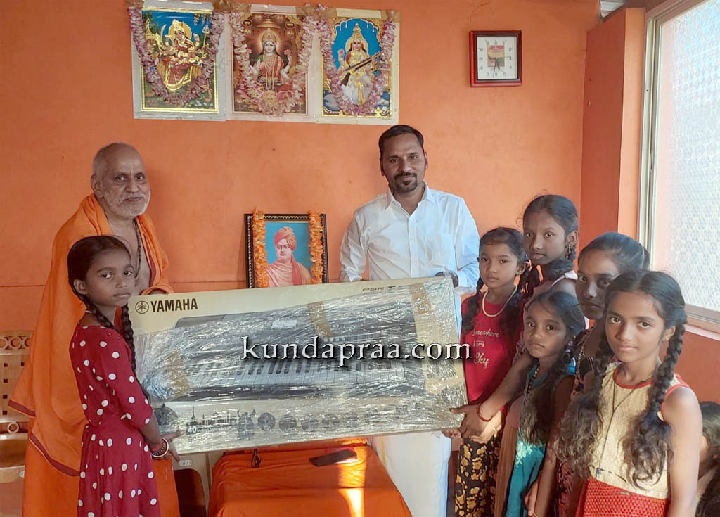 ಬೈಂದೂರು: ತಾಲೂಕಿನ ಏಳಜಿತ ಶ್ರೀ ರಾಮಕೃಷ್ಣ ಕುಟೀರಕ್ಕೆ ಶುಕ್ರವಾರ ಭೇಟಿ ನೀಡಿದ ಶ್ರೀ ವರಲಕ್ಷ್ಮೀ ಚಾರಿಟೇಬಲ್ ಟ್ರಸ್ಟ್ ಮ್ಯಾನೇಜಿಂಗ್ ಟ್ರಸ್ಟೀ, ಉದ್ಯಮಿ ಡಾ. ಗೋವಿಂದ ಬಾಬು ಪೂಜಾರಿ ಅವರು ಕುಟೀರದ ವಿದ್ಯಾರ್ಥಿಗಳ ಸಂಗೀತ ಕಲಿಕೆಗಾಗಿ ಅಂದಾಜು ರೂ.50,000 ಮೌಲ್ಯದ ಕೀಬೋರ್ಡ್ ಹಾಗೂ ಇನ್ನಿತರ ಸಂಗೀತ ಪರಿಕರಗಳನ್ನು ಕೊಡುಗೆಯಾಗಿ ನೀಡಿದರು.