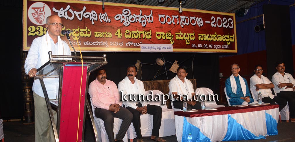 ಅವರು ಭಾನುವಾರ ಇಲ್ಲಿನ ಶಾರದಾ ವೇದಿಕೆಯಲ್ಲಿ ಸುರಭಿ ರಿ. ಬೈಂದೂರು ಆಶ್ರಯದಲ್ಲಿ ಜರುಗುತ್ತಿರುವ ರಂಗಸುರಭಿ 2023 – ನಾಲ್ಕು ದಿನಗಳ ರಾಜ್ಯಮಟ್ಟದ ನಾಟಕೋತ್ಸವದ ಎರಡನೇ ದಿನ ಸಾಧಕರಿಗೆ ಸನ್ಮಾನಿಸಿ ಮಾತನಾಡಿ 23 ವರ್ಷಗಳ ಪ್ರಯಾಣದಲ್ಲಿ ಸುರಭಿ ಸಂಸ್ಥೆ ಸಾಕಷ್ಟು ಯಶಸ್ಸಿನ ಮೈಲುಗಲ್ಲುಗಳನ್ನು ದಾಖಲಿಸಿ ಮುನ್ನಡೆಯುತ್ತಿರುವುದು ಸಂತೋಷದ ಸಂಗತಿ ಎಂದರು.