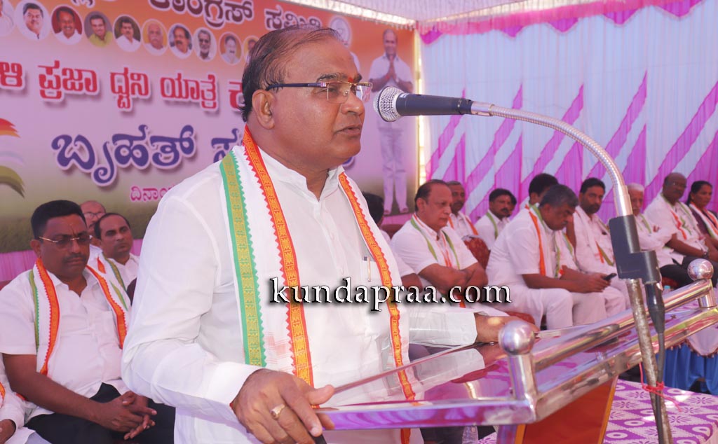 ಅವರು ಬೈಂದೂರು ಬ್ಲಾಕ್ ಕಾಂಗ್ರೆಸ್ ನೇತೃತ್ವದಲ್ಲಿ ಭಾನುವಾರ ಯಡ್ತರೆಯಲ್ಲಿ ಆಯೋಜಿಸಲಾದ ಕಾಂಗ್ರೆಸ್ ಕರಾವಳಿ ಪ್ರಜಾಧ್ವನಿ ಯಾತ್ರೆಯ ಬೃಹತ್ ಸಮಾವೇಶ ಉದ್ಘಾಟಿಸಿ ಮಾತನಾಡಿ, ಮುಖ್ಯಮಂತ್ರಿ ಬಸವರಾಜ ಬೊಮ್ಮಯಿ ಸೂತ್ರದ ಗೊಂಬೆಯಂತೆ ಕೆಲಸ ಮಾಡುತ್ತಿದ್ದಾರೆ. ಆರೋಗ್ಯ ಇಲಾಖೆ, ಪೊಲೀಸ್ ಇಲಾಖೆ, ಶಿಕ್ಷಕರ ನೇಮಕಾತಿ, ಅಭಿವೃದ್ಧಿ ಕಾಮಗಾರಿಯಲ್ಲಿ ಬಿಜೆಪಿ ಸರಕಾರದ ಭ್ರಷ್ಟಾಚಾರ ಯಥೇಚ್ಛವಾಗಿ ನಡೆದಿದೆ. ವಿಜಯಸಂಕಲ್ಪ ಯಾತ್ರೆ ಮಾಡಿರುವುದು ಭ್ರಷ್ಟಾಚಾರದಲ್ಲಿ ಸಾಧನೆ ಮಾಡಿದ್ದಕ್ಕಾಗಿಯೇ? ಎಂದು ಪ್ರಶ್ನಿಸಿದರು.
