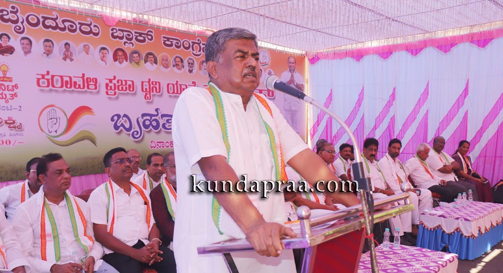 ಮಾಜಿ ಶಾಸಕ ಕೆ. ಗೋಪಾಲ ಪೂಜಾರಿ ಮಾತನಾಡಿ ಮೆಡಿಕಲ್  ಕಾಲೇಜು, ಇಂಜಿನಿಯರಿಂಗ್ ಕಾಲೇಜು, ಐದು ಹೊಳೆ ಜೊಡನೆ, 100 ಬೆಡ್ ಆಸ್ಪತ್ರೆ, ಬೈಂದೂರು ಏರ್‌ಪೋರ್ಟ್ ಎಲ್ಲಿದೆ. ಶಾಸಕರ ಕಛೇರಿ ಬಾಗಿಲು ತೆಗೆಯುತ್ತಿಲ್ಲ. ಐದು ವರ್ಷದಲ್ಲಿ ಅಕ್ರಮ ಸಕ್ರಮದ 2 ಮೀಟಿಂಗ್ ನಡೆದಿದೆ. 94ಸಿ ಹಕ್ಕುಪತ್ರ ಈತನಕ ಕೊಟ್ಟಿಲ್ಲ ಎಂದು ಆರೋಪಿಸಿದ ಅವರು, ತಹಶಿಲ್ದಾರರ ಕಛೇರಿ, ತಾಲೂಕು, ಐಟಿಐ ಕಾಲೇಜು, ಬಿಇಓ ಆಫೀಸ್, ಮೆಸ್ಕಾಂ ಉಪಕೇಂದ್ರ, ಕೆ‌ಎಸ್‌ಆರ್‌ಟಿಸಿ ಬಸ್ ಹಾಗೂ ಬಸ್ ನಿಲ್ದಾಣ ಮೊದಲಾದವರುಗಳು ತಾನು ಶಾಸಕನಾಗಿದ್ದಾಗ ಕಾಂಗ್ರೆಸ್ ಪಕ್ಷದ ನೀಡಿದ ಕೊಡುಗೆಯಾಗಿದೆ ಎಂದರು.
