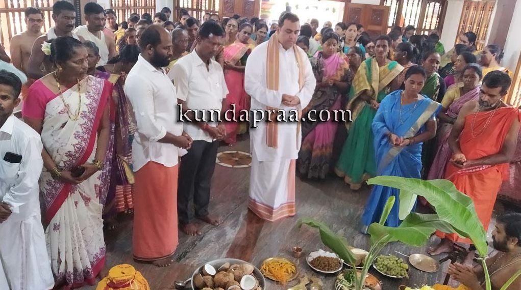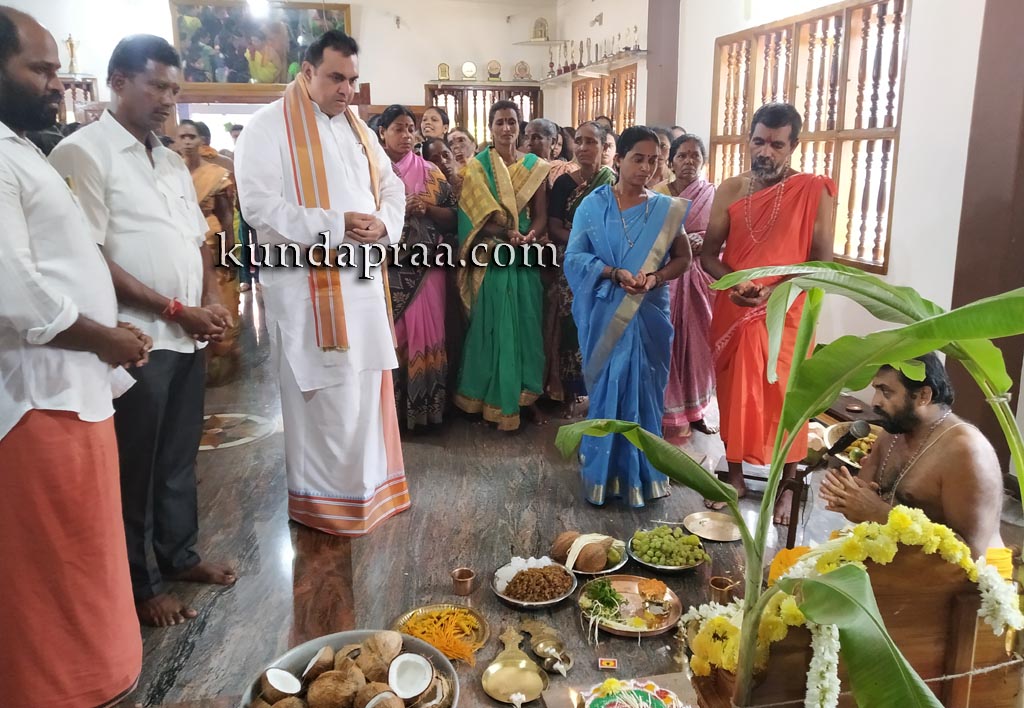ಶ್ರೀ ಸಂಸ್ಥಾನ ಗೋಕರ್ಣ ಶ್ರೀರಾಮಚಂದ್ರಪುರ ಮಠದ ಪೀಠಾಧಿಪತಿ ಶ್ರೀ ರಾಘವೇಂದ್ರ ಭಾರತಿ ಮಹಾಸ್ವಾಮಿಗಳ ದಿವ್ಯ ಉಪಸ್ಥಿತಿಯಲ್ಲಿ ಎ. ಚೆನ್ನಕೇಶವ ಗಾಯತ್ರಿ ಭಟ್ ಗಜಪುರ ಆನಗಳ್ಳಿ ಇವರ ನೇತ್ರತ್ವದಲ್ಲಿ ಕ್ಷೇತ್ರ ಪುರೋಹಿತರಾದ ನಾಗರಾಜ ಐತಾಳ್ ಇವರ ಪೌರೋಹಿತ್ಯದಲ್ಲಿ ಧಾರ್ಮಿಕ ಕಾರ್ಯಗಳು ಅತ್ಯಂತ ವೈಭವದಿಂದ ನಡೆಯಲಿದೆ ಎಂದು ಅವರು ಭಾನುವಾರ ದೇವಳದಲ್ಲಿ ನಡೆದ ಸಾಮೂಹಿಕ ಶ್ರೀ ಸತ್ಯನಾರಾಯಣ ಪೂಜೆಯಲ್ಲಿ ಪಾಲ್ಗೊಂಡು ನಂತರ ಅವರು ಮಾಹಿತಿ ನೀಡಿದರು.