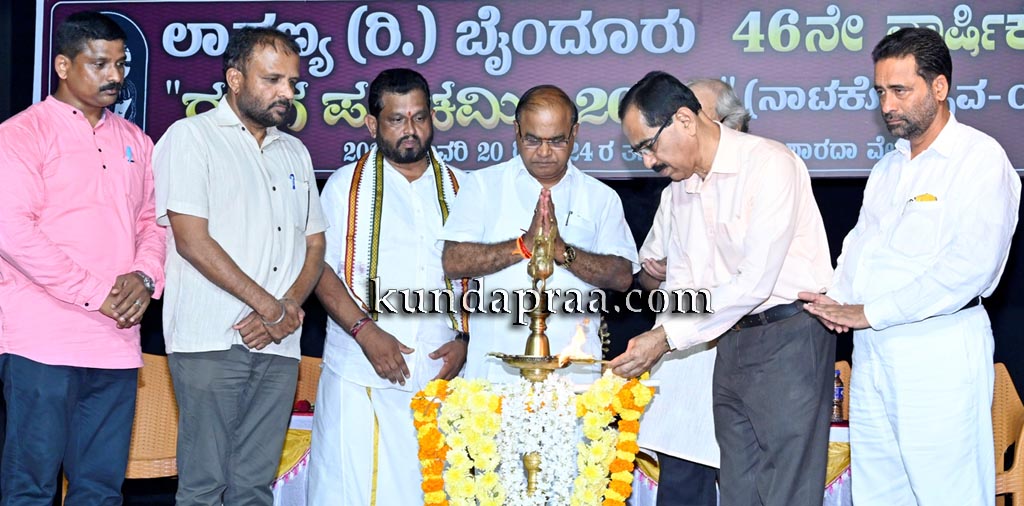 ಬೈಂದೂರು ಶ್ರೀ ಶಾರದಾ ವೇದಿಕೆಯಲ್ಲಿ ಸ್ಥಳೀಯ ಕಲಾಸಂಸ್ಥೆ ಲಾವಣ್ಯದ 46ನೇ ವಾರ್ಷಿಕೋತ್ಸವ ಹಾಗೂ ರಂಗಪಂಚಮಿ-23 ಐದು ದಿನಗಳ ನಾಟಕೋತ್ಸವ ಉದ್ಘಾಟಿಸಿ ಮಾತನಾಡಿದರು. ಕಲಾವಿದರು ತಮ್ಮ ಪಾತ್ರಗಳಿಗಾಗಿ ಬೇಡಿಕೆ ಹಾಗೂ ಆರ್ಥಿಕ ಸಂಕಷ್ಟಗಳಿಂದ ಇಂದು ಹಲವು ನಾಟಕ ಕಲಾ ಸಂಸ್ಥೆಗಳು ಮುಚ್ಚಲ್ಪಟ್ಟಿದೆ, ಆದರೆ ಬೈಂದೂರಿನ ಲಾವಣ್ಯ ಸಂಸ್ಥೆ ಇದಕ್ಕೆ ಅಪವಾದವಾಗಿದ್ದು, ಕಳೆದ 45ವರ್ಷಗಳಿಂದ ಹಲವು ತ್ರಾಸದಾಯಕ ಪರಿಸ್ಥಿತಿಯನ್ನು ಎದುರಿಸಿಯೂ, ತಮ್ಮಲ್ಲಿ ಯಾವುದೇ ಭಿನ್ನಾಭಿಪ್ರಾಯವಿಲ್ಲದೇ, ಪರಸ್ಪರ ವಿಶ್ವಾಸದಿಂದ ಮುನ್ನೆಡೆದುಕೊಂಡು ಹೋಗುತ್ತಿರುವುದಲ್ಲದೇ, ಈ ಭಾಗದ ಜನರಿಗೆ ಮನೋರಂಜನೆಯೊಂದಿಗೆ ಉತ್ತಮ ಸಂದೇಶ ನೀಡುವ ಕೆಲಸ ಮಾಡುತ್ತಿದೆ ಎಂದರು.