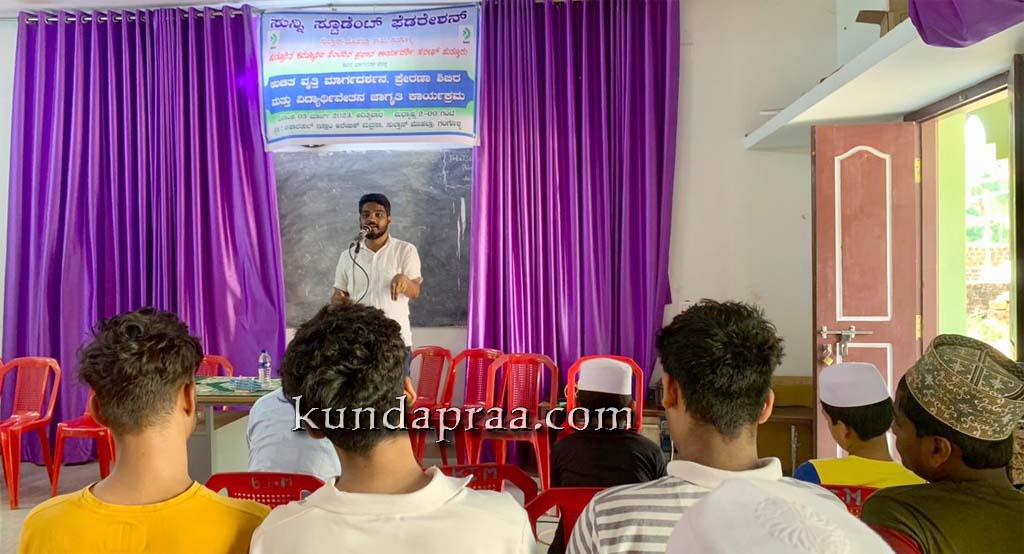 ಗಂಗೊಳ್ಳಿ,ಮಾ.5: ಎಸ್.ಎಸ್.ಎಫ್ (ಸುನ್ನಿ ಸ್ಟುಡೆಂಟ್ ಫೆಡರೇಶನ್) ಗಂಗೊಳ್ಳಿ ಶಾಖೆ ವತಿಯಿಂದ ಇಲ್ಲಿನ ಸುಲ್ತಾನ್ ಮೊಹಲ್ಲಾದ ಬಿಷಾರತುಲ್ ಅರೇಬಿಕ್ ಮದ್ರಸದಲ್ಲಿ ’ಉಚಿತ ವೃತ್ತಿ ಮಾರ್ಗದರ್ಶನ, ಪ್ರೇರಣಾ ಶಿಬಿರ ಮತ್ತು ವಿದ್ಯಾರ್ಥಿವೇತನ ಜಾಗೃತಿ ಕಾರ್ಯಕ್ರಮ ಭಾನುವಾರ ಜರುಗಿತು.