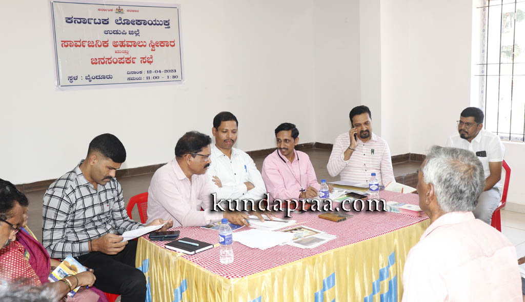 ಬೈಂದೂರು: ಉಡುಪಿ ಲೋಕಾಯುಕ್ತ ಪೊಲೀಸ್ ಠಾಣಾ ವಿಭಾಗದ ವತಿಯಿಂದ ಬೈಂದೂರು ಆಡಳಿತ ಸೌಧದಲ್ಲಿ ಬುಧವಾರ ಬೈಂದೂರು ತಾಲೂಕು ವ್ಯಾಪ್ತಿಗೆ ಸಂಬಂಧಿಸಿದಂತೆ ಸಾರ್ವಜನಿಕ ಅಹವಾಲು ಸ್ವೀಕಾರ ಹಾಗೂ ಜನಸಂಪರ್ಕ ಸಭೆ ನಡೆಯಿತು.