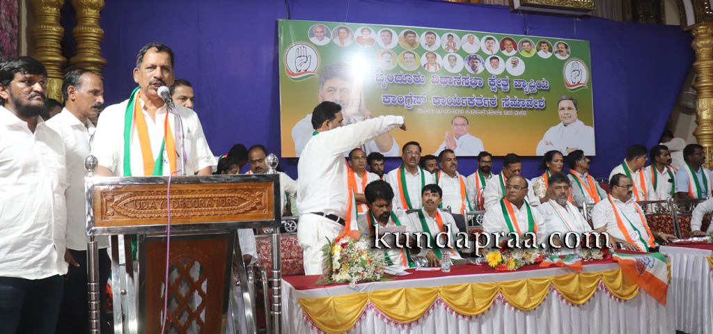 ಅವರು ಇಲ್ಲಿನ ಯಡ್ತರೆ ಜೆ.ಎನ್.ಆರ್. ಸಭಾಭವನದಲ್ಲಿ ಜರುಗಿದ ಬೈಂದೂರು ವಿಧಾನಸಭಾ ಕ್ಷೇತ್ರ ಕಾಂಗ್ರೆಸ್ ಪಕ್ಷದ ಕಾರ್ಯಕರ್ತರ ಸಭೆಯನ್ನು ಉದ್ದೇಶಿಸಿ ಮಾತನಾಡಿ, ಕಾಂಗ್ರೆಸ್ ಅಧಿಕಾರದಲ್ಲಿದ್ದಾಗ ಹತ್ತಾರು ಸರಕಾರಿ ಉದ್ದಿಮೆ ಸ್ಥಾಪನೆ, ಜನರ ಸಶಕ್ತಿಕರಣಕ್ಕೆ ನೂರಾರು ಯೋಜನೆಗಳನ್ನು ತಂದಿತ್ತು. ಹಾಗಾಗಿಯೇ ಇಂದು ದೇಶ ಪ್ರಗತಿಯ ಹಾದಿಯಲ್ಲಿದೆ. ಆದರೆ ಬಿಜೆಪಿ ಸರಕಾರ ಜನರಿಗೆ ಉಪಯೋಗ ಆಗುವ ಯಾವ ಯೋಜನೆಯನ್ನೂ ಜಾರಿ ಮಾಡಿಲ್ಲ. ಬದಲಿಗೆ ಭಾವನೆ ಜೊತೆಗೆ ಆಟವಾಡುತ್ತಿದೆ. ಅವರು ಹಿಂದೂಗಳು ಮುಂದು ಎಂದರೆ, ನಾವೆಲ್ಲರೂ ಸೇರಿ ಒಂದು ಎಂದು ಕಾಂಗ್ರೆಸ್ ಹೇಳುತ್ತದೆ. ಎಲ್ಲಾ ಧರ್ಮ, ಜನಾಂಗ, ಜಾತಿ ಸೇರಿಯೇ ಒಂದು ದೇಶವಾಗಿದೆ ಎಂದರು.