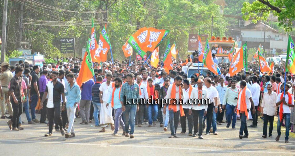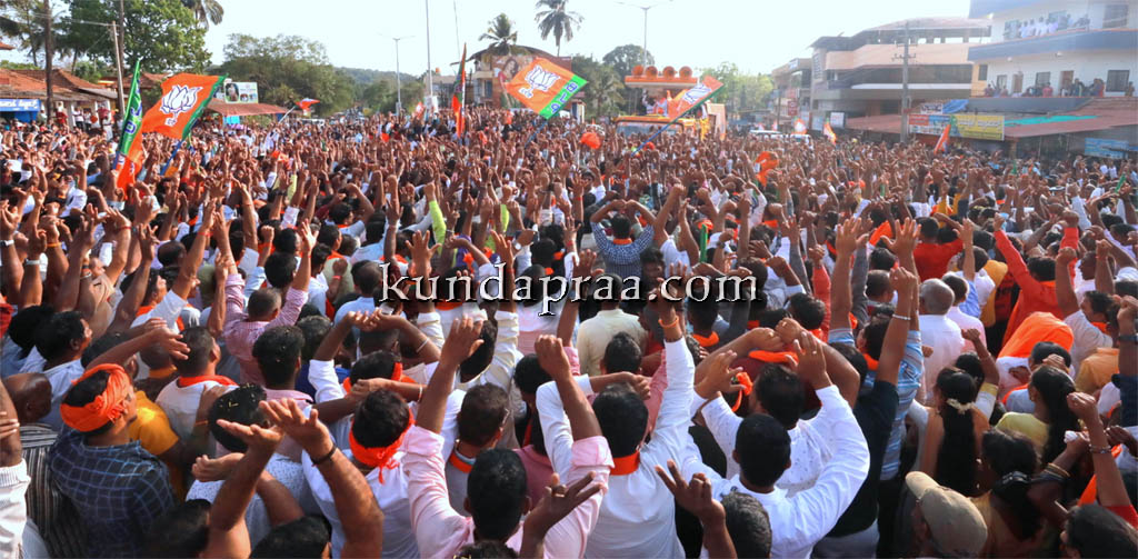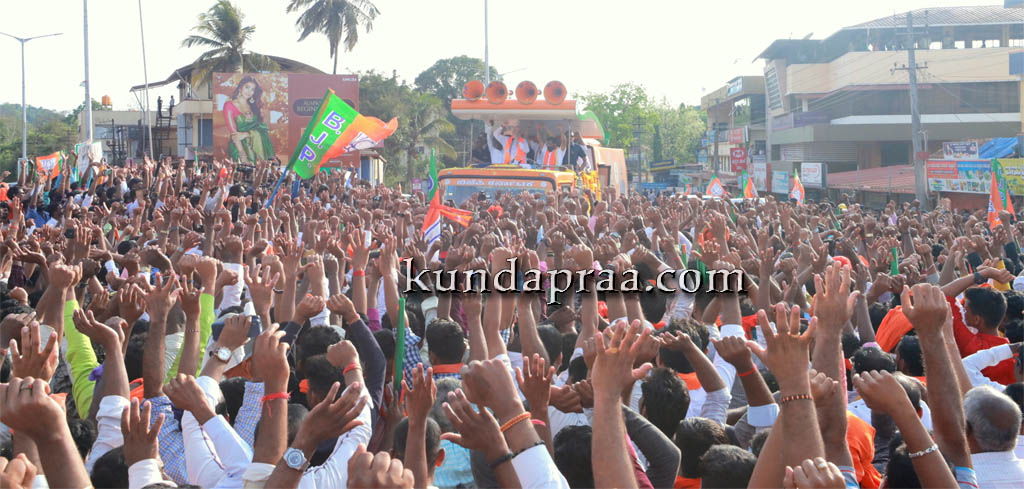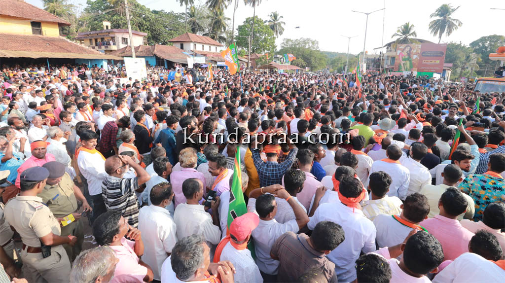 ಕರಾವಳಿ ಭಾಗದಲ್ಲಿ ರೈತರ ಹಾಗೂ ಮೀನುಗಾರರ ಹಿತಾಸಕ್ತಿಯ ಕಾಪಾಡುವ ಕೆಲಸವನ್ನು ಕೇಂದ್ರ ಸರ್ಕಾರ ಮಾಡಿದೆ. ಮೀನುಗಾರಿಕಾ ಬಂದರು ಅಭಿವೃದ್ಧಿ ಮಾಡಿದೆ. ಅಡಿಕೆ ಕೃಷಿಕರಿಗೆ ಬೆಂಬಲ ನೀಡಿದ್ದರಿಂದ ಉತ್ತಮ ಧಾರಣೆ ಲಭಿಸಿದೆ. ಎಲ್ಲ ಸ್ತರಗಳ ಜನರಿಗೆ ಸಾಮಾಜಿಕ ನ್ಯಾಯ ನೀಡುವಲ್ಲಿ ಸರ್ಕಾರ ಬದ್ದವಾಗಿದೆ ಎಂದ ಅವರು, ಬೈಂದೂರಿನಲ್ಲಿ ಭಾರತೀಯ ಜನತಾ ಪಕ್ಷದ ಅಭ್ಯರ್ಥಿಯನ್ನು 50 ಸಾವಿರಕ್ಕೂ ಅಧಿಕ ಮತಗಳ ಅಂತರದಿಂದ ಗೆಲ್ಲಿಸಿದರೆ ವಿಜಯೋತ್ಸವದಲ್ಲಿ ಪಾಲ್ಗೊಳ್ಳುವುದಾಗಿ ತಿಳಿಸಿದರು.