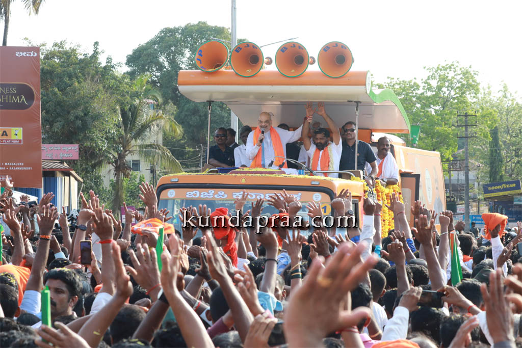 ಕುಂದಾಪುರ: ಕೇಂದ್ರ ಹಾಗೂ ರಾಜ್ಯದ ಡಬ್ಬಲ್ ಇಂಜಿನ್ ಸರ್ಕಾರದಿಂದ ಕರ್ನಾಟಕದಲ್ಲಿ ಅಭಿವೃದ್ಧಿ ಸ್ಥಿರವಾಗಿದೆ. ಪಿ.ಎಫ್.ಐನಂತಹ ಸಂಘಟನೆ ತಲೆಎತ್ತದಿರಬೇಕಾದರೆ ರಾಜ್ಯದಲ್ಲಿ ಮತ್ತೆ ಬಿಜೆಪಿ ಸರಕಾರವನ್ನು ಆರಿಸಬೇಕಿದೆ ಕೇಂದ್ರ ಗೃಹ ಹಾಗೂ ಸಹಕಾರಿ ಸಚಿವ ಅಮಿತ್ ಶಾ ಹೇಳಿದರು.