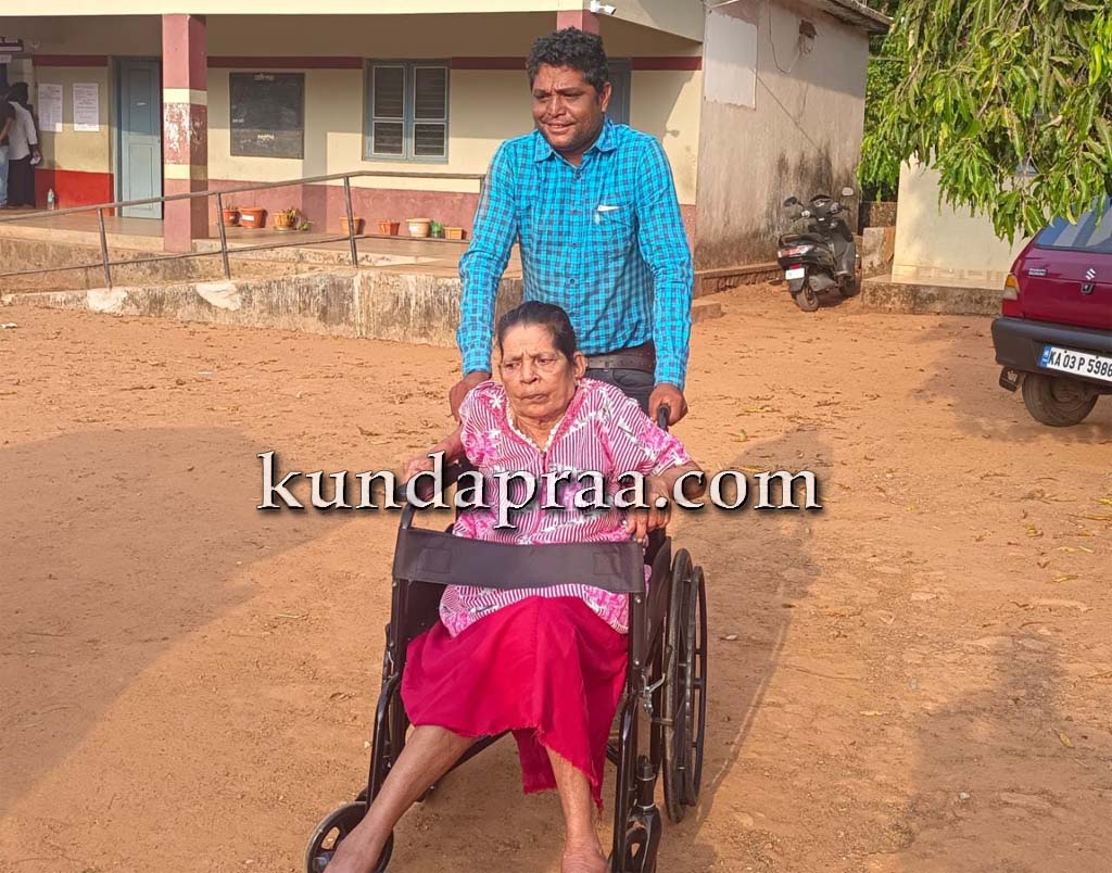 ತಗ್ಗರ್ಸೆಯಲ್ಲಿ 108 ವರ್ಷದ ವೃದ್ಧೆ ಮತದಾನದಲ್ಲಿ ಪಾಲ್ಗೊಂಡಿರುವುದು