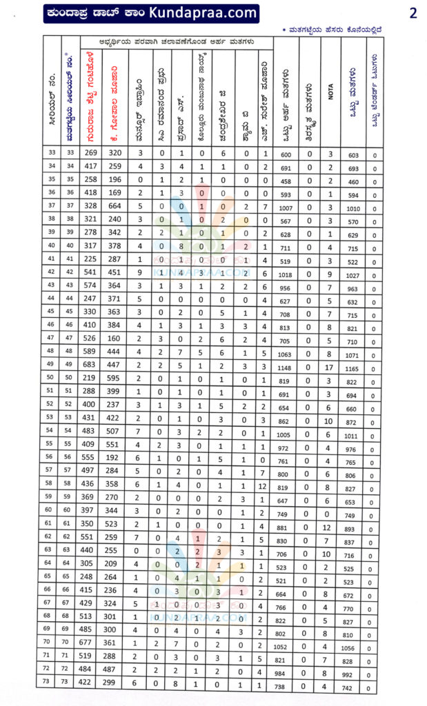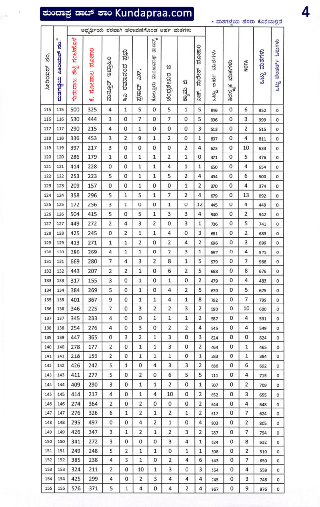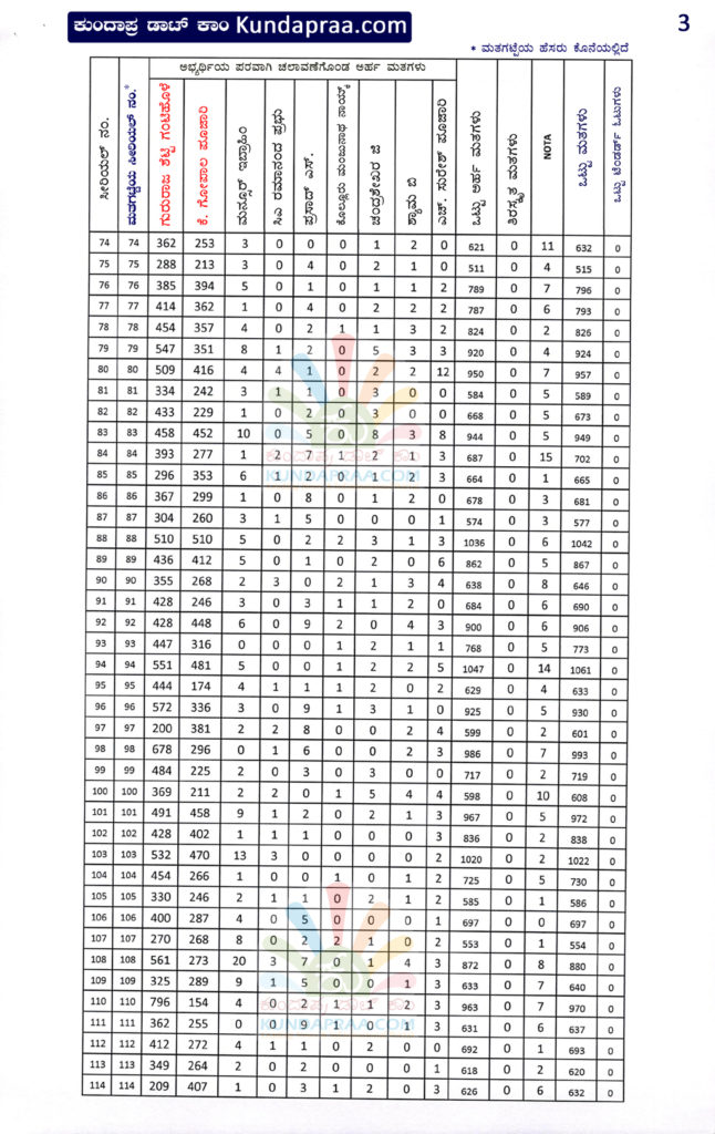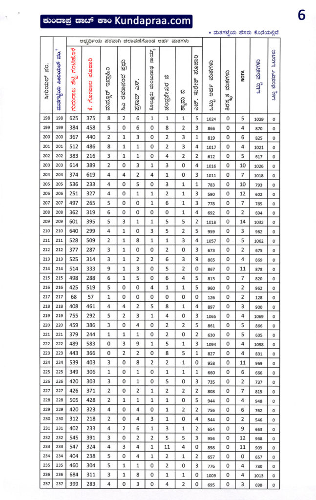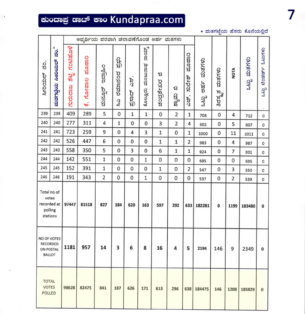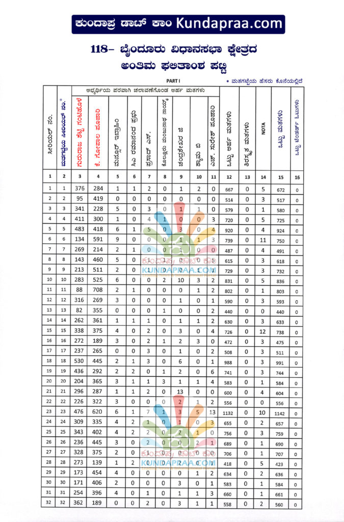 118- ಬೈಂದೂರು ವಿಧಾನಸಭಾ ಕ್ಷೇತ್ರದ ಅಂತಿಮ ಫಲಿತಾಂಶ ಪಟ್ಟಿ