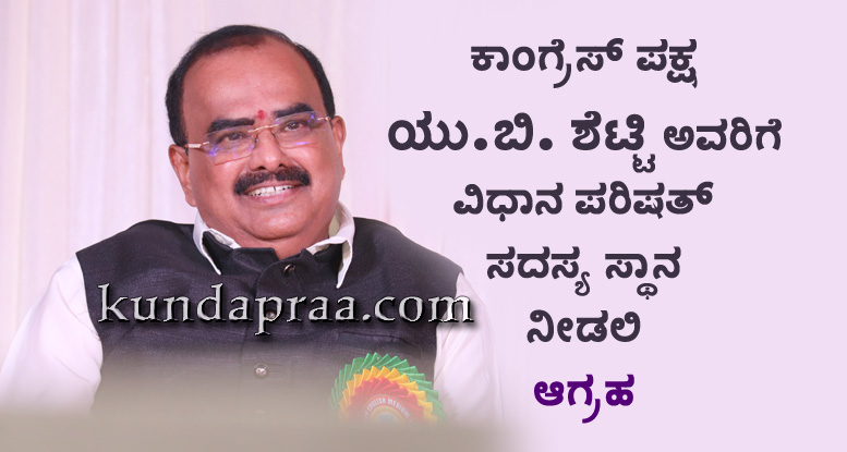 ಪ್ರಸಕ್ತ ಉಡುಪಿ ಜಿಲ್ಲೆಯನ್ನು ಆಯ್ಕೆ ಮಾಡಿಕೊಂಡ ಯಾವುದೇ ವಿಧಾನ ಪರಿಷತ್ ಸದಸ್ಯರುಗಳು ಕಾಂಗ್ರೆಸ್ ಪಕ್ಷದಲ್ಲಿ ಇಲ್ಲದ ಕಾರಣ ಸರ್ಕಾರ ಮಟ್ಟದಲ್ಲಿ ಅತ್ಯಂತ ಪ್ರಭಾವಶಾಲಿಗಳಾಗಿರುವ ಯು.ಬಿ. ಶೆಟ್ಟರನ್ನು ಕಾಂಗ್ರೆಸ್ ಪಕ್ಷ ವಿಧಾನ ಪರಿಷತ್ ಸದಸ್ಯರನ್ನಾಗಿ ಮಾಡಿದರೆ ಜಿಲ್ಲೆಯಲ್ಲಿ ಅಭಿವೃದ್ಧಿಯ ಮಹಾಪೂರ ಹರಿಯುವುದರಲ್ಲಿ ಯಾವುದೇ ಅನುಮಾನವಿಲ್ಲ.