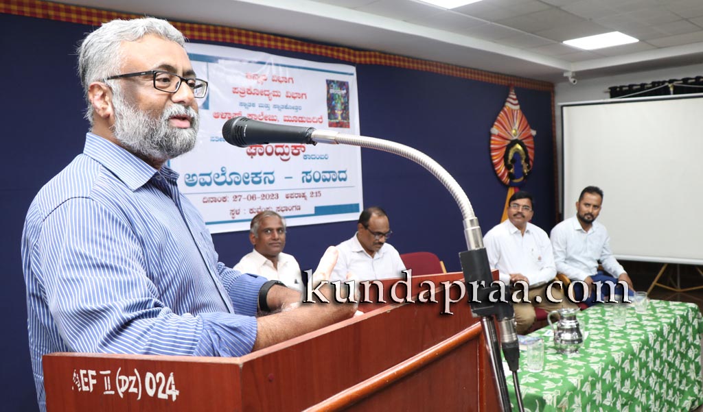 ಆಳ್ವಾಸ್ ಕಾಲೇಜಿನ ಸ್ನಾತಕ ಮತ್ತು ಸ್ನಾತಕೋತ್ತರ ಕನ್ನಡ ಹಾಗೂ ಪತ್ರಿಕೋದ್ಯಮ ಮತ್ತು ಸಮೂಹ ಸಂವಹನ ವಿಭಾಗಗಳು ಕಾಲೇಜಿನ ಕುವೆಂಪು ಸಭಾಂಗಣದಲ್ಲಿ ಶನಿವಾರ ಹಮ್ಮಿಕೊಂಡ ತಮ್ಮ ’ಘಾಂದ್ರುಕ್’ ಕಾದಂಬರಿ ಅವಲೋಕನ – ಸಂವಾದ ಕಾರ್ಯಕ್ರಮದಲ್ಲಿ ಅವರು ಪ್ರತಿಕ್ರಿಯಿಸಿದರು.