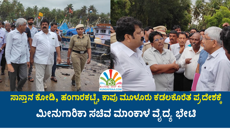 ಸಾಸ್ತಾನ ಕೋಡಿ, ಹಂಗಾರಕಟ್ಟೆ, ಕಾಪು ಮೂಳೂರು ಕಡಲಕೊರೆತ ಪ್ರದೇಶಕ್ಕೆ ಮೀನುಗಾರಿಕಾ ಸಚಿವ ಮಾಂಕಾಳ ವೈದ್ಯ ಭೇಟಿ, ಪರಿಶೀಲನೆ. ಶಾಶ್ವತ ಯೋಜನೆ ರೂಪಿಸುವ ಆಶ್ವಾಸನೆ ಹಿಂದೂಳಿದ ವರ್ಗಗಳ ಆಯೋಗದ ಅಧ್ಯಕ್ಷ ಕೆ. ಜಯಪ್ರಕಾಶ್ ಹೆಗ್ಡೆ, ಮಾಜಿ ಸಚಿವ ಸೊರಕೆ, ಮೊಗವೀರ ಸಮುದಾಯದ ಮುಖಂಡ ಜಿ. ಶಂಕರ್, ಇಲಾಖಾ ಅಧಿಕಾರಿಗಳ ಉಪಸ್ಥಿತಿ