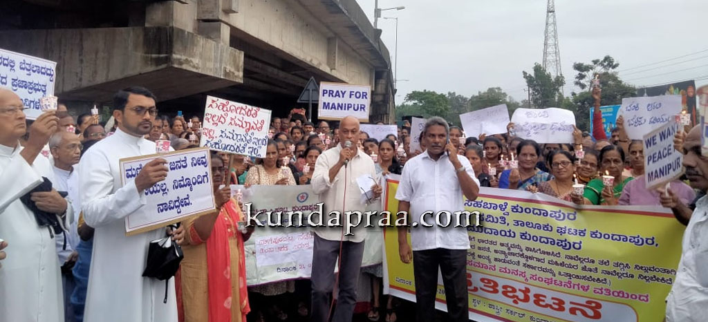 ಅವರು ಸೋಮವಾರ ಕುಂದಾಪುರದ ಸಹಬಾಳ್ವೆ ಕುಂದಾಪುರ, ದಸಂಸ ತಾಲೂಕು ಘಟಕ ಕುಂದಾಪುರ, ಸಮುದಾಯ ಕುಂದಾಪುರ ಹಾಗೂ ಇನ್ನಿತರ ಸಮಾನ ಮನಸ್ಕ ಸಂಘಟನೆಗಳ ನೇತೃತ್ವದಲ್ಲಿ ಮಣಿಪುರದಲ್ಲಿ ನಡೆಯುತ್ತಿರುವ ಹಿಂಸಾಚಾರವನ್ನು ಖಂಡಿಸಿ ನಡೆದ ಪ್ರತಿಭಟನಾ ಸಭೆಯನ್ನು ಉದ್ದೇಶಿಸಿ ಅವರು ಮಾತನಾಡಿದರು.