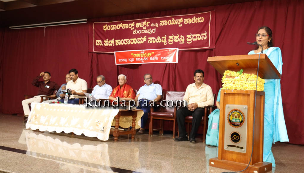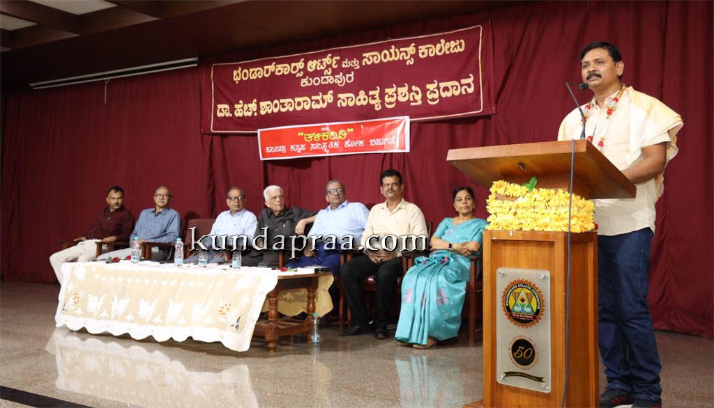 ಅವರು ಇಲ್ಲಿನ ಭಂಡಾರ್ಕಾರ್ಸ್ ಪದವಿ ಕಾಲೇಜಿನ ಆರ್.ಎನ್. ಶೆಟ್ಟಿ ಸಭಾಂಗಣದಲ್ಲಿ ನಡೆದ ಡಾ. ಹೆಚ್. ಶಾಂತಾರಾಮ್ ಸಾಹಿತ್ಯ ಪ್ರಶಸ್ತಿ ಪ್ರದಾನ ಸಮಾರಂಭ ಮತ್ತು ತಳಿಕಂಡಿ ಕುಂದಾಪ್ರ ಕನ್ನಡ ಸಾಂಸ್ಕೃತಿಕ ಕೋಶ ಪುಸ್ತಕ ಲೋಕಾರ್ಪಣೆ ಕಾರ್ಯಕ್ರಮದಲ್ಲಿ ಡಾ. ಹೆಚ್. ಶಾಂತಾರಾಮ್ ಸಾಹಿತ್ಯ ಪ್ರಶಸ್ತಿ ಸ್ವೀಕರಿಸಿ ಮಾತನಾಡಿದರು.