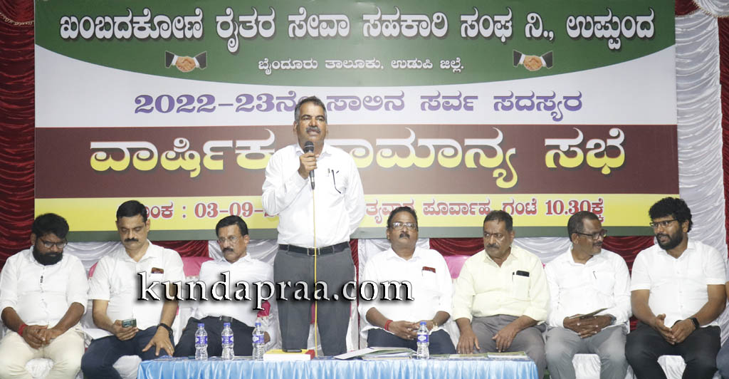 ಮಹಾಸಭೆಯ ಅಧ್ಯಕ್ಷತೆ ವಹಿಸಿದ್ದ ಸಂಘದ ಅಧ್ಯಕ್ಷ ಎಸ್. ಪ್ರಕಾಶ್ಚಂದ್ರ ಶೆಟ್ಟಿ ಮಾತನಾಡಿ, ಖಂಬದಕೋಣೆ ರೈತರ ಸೇವಾ ಸಹಕಾರಿ ಸಂಘವು 46 ವರ್ಷಗಳುದ್ದಕ್ಕೆ ಏರುಗತಿಯ ಪ್ರಗತಿಯನ್ನು ದಾಖಲಿಸುತ್ತ ಬಂದಿದೆ. ವರದಿ ವರ್ಷದಲ್ಲಿ ರೂ.1015 ಕೋಟಿ ವ್ಯವಹಾರ ನಡೆಸಿ, ರೂ 5.07 ಕೋಟಿ ಲಾಭ ಗಳಿಸಿದೆ. ಸದಸ್ಯರಿಗೆ ಶೇ.15 ಡಿವಿಡೆಂಡ್ ನೀಡಲು ನಿರ್ಧರಿಸಲಾಗಿದೆ. ಗ್ರಾಹಕರ ಸಹಕಾರ, ನಿಧಿಗಳ ಸಮರ್ಪಕ ನಿರ್ವಹಣೆ, ಸಮಯೋಜಿತ ಹೂಡಿಕೆಗಳಿಂದಾಗಿ ಸಂಘವು ಉತ್ತಮ ಪ್ರಗತಿ ಸಾಧಿಸಿದೆ ಎಂದು ಹೇಳಿದರು.