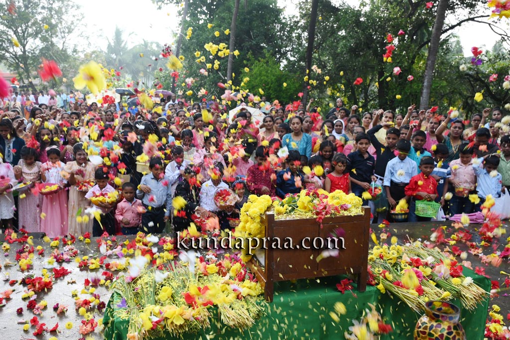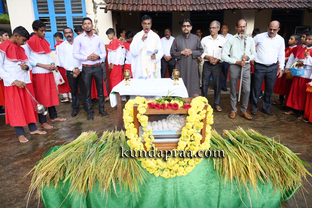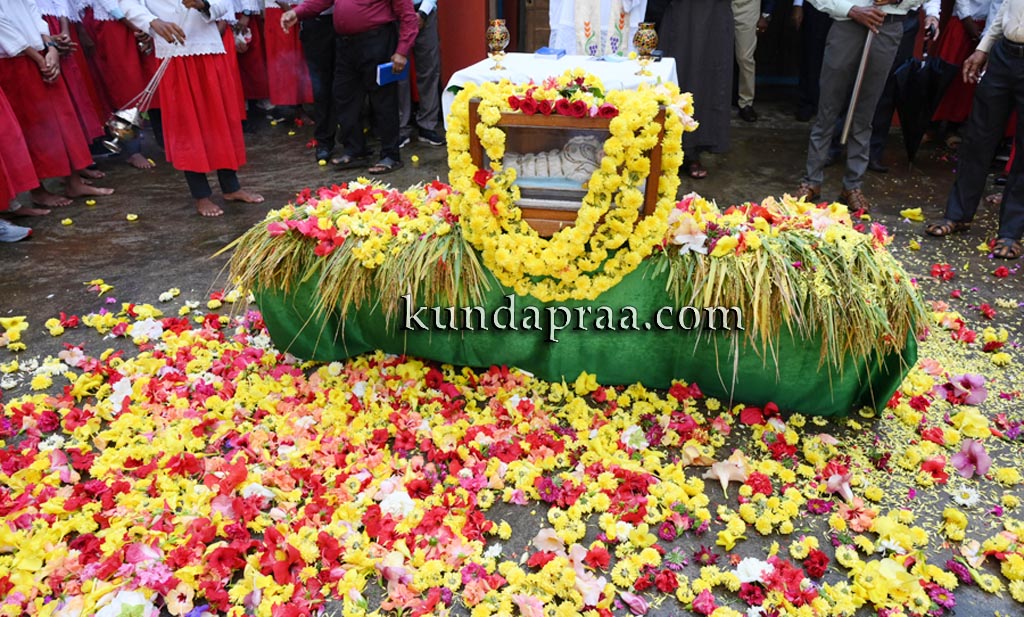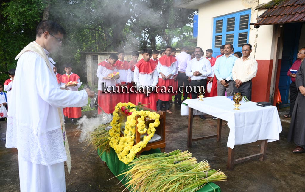 ಧರ್ಮಗುರು ವಿನ್ಸೆಂಟ್ ಕುವೆಲ್ಲೋ ಹಾಗೂ ಕಟ್ಕೇರಿಯ ಜೋಸ್ವೀ ಡಿಸೋಜಾ ರವರ ನೇತೃತ್ವದಲ್ಲಿ ಬಾಲೆ ಮರಿಯಮ್ಮಳಿಗೆ ಹೂವುಗಳನ್ನು ಅರ್ಪಿಸಿ, ತೆನೆಗಳ ಆಶೀರ್ವಚನ ನಡೆಸಲಾಯಿತು.