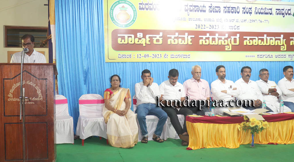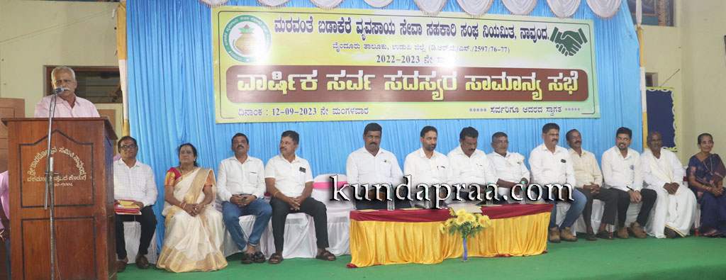 ಬೈಂದೂರು,ಸೆ.12: ಮರವಂತೆ ಬಡಾಕೆರೆ ವ್ಯವಸಾಯ ಸೇವಾ ಸಹಕಾರಿ ಸಂಘದ ಮಹಾಸಭೆಯು ನಾವುಂದದ ಶ್ರೀ ಮಹಾಗಣಪತಿ ಮಾಂಗಲ್ಯ ಮಂಟಪದಲ್ಲಿ ಇಂದು ನಡೆಯಿತು.