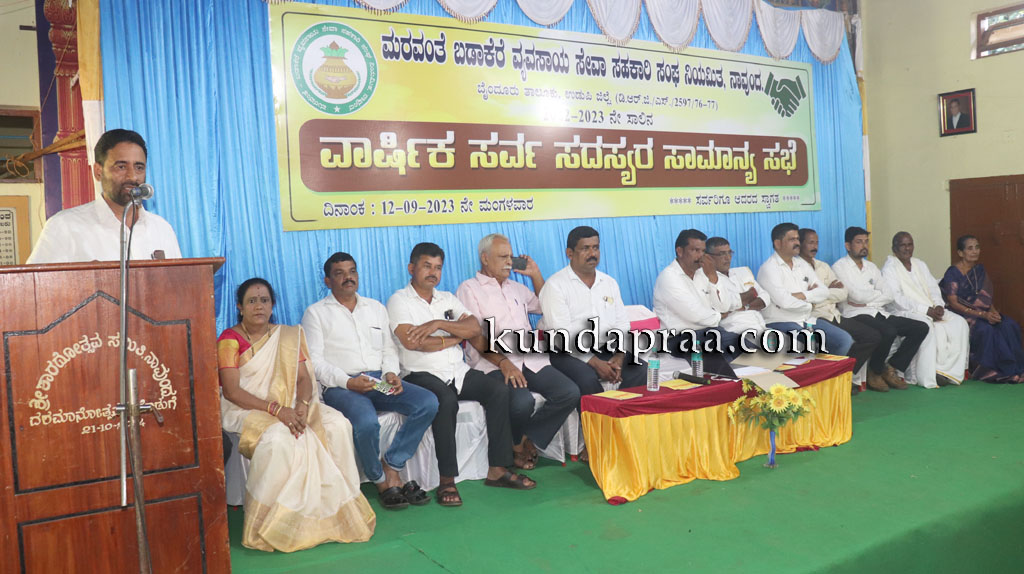 ಮಹಾಸಭೆಯ ಅಧ್ಯಕ್ಷತೆ ವಹಿಸಿದ ಸಂಘದ ಅಧ್ಯಕ್ಷರಾದ ಎಸ್. ರಾಜು ಪೂಜಾರಿ ಮಾತನಾಡಿ, ಮರವಂತೆ ಬಡಾಕೆರೆ ವ್ಯವಸಾಯ ಸೇವಾ ಸಹಕಾರಿ ಸಂಘವು ಹಿಂದಿನ ಸಾಲಿನಲ್ಲಿ ರೂ 312 ಕೋಟಿಗೂ ಮಿಕ್ಕಿದ ವ್ಯವಹಾರ ನಡೆಸಿ, ರೂ. 1.25 ಕೋಟಿ ಲಾಭ ಗಳಿಸಿದೆ. ಸದಸ್ಯರಿಗೆ ಶೇ. 14 ಡಿವಿಡೆಂಡ್ ನೀಡಲು ನಿರ್ಧರಿಸಲಾಗಿದೆ. ಸಂಘವು ಹಿಂದಿನ ಸಾಲಿನಲ್ಲಿ ರೂ 58.70 ಕೋಟಿ ಠೇವಣಿ ಹೊಂದಿ, ಸದಸ್ಯರಿಗೆ ರೂ. 43.82 ಕೋಟಿ ಸಾಲ ನೀಡಿದೆ. ಅದರಲ್ಲಿ ರೂ. 10 ಕೋಟಿಗೂ ಮಿಕ್ಕಿ ಕೃಷಿ ಸಾಲವನ್ನು ಸಂಘವು ಸದಸ್ಯರಿಗೆ ನೀಡಲಾಗಿದೆ. ವಿವಿಧ ನಿಧಿಗಳಲ್ಲಿ 45.71 ಕೋಟಿ ರೂ. ಸಂಚಯಿಸಲಾಗಿದೆ ಎಂದರು.