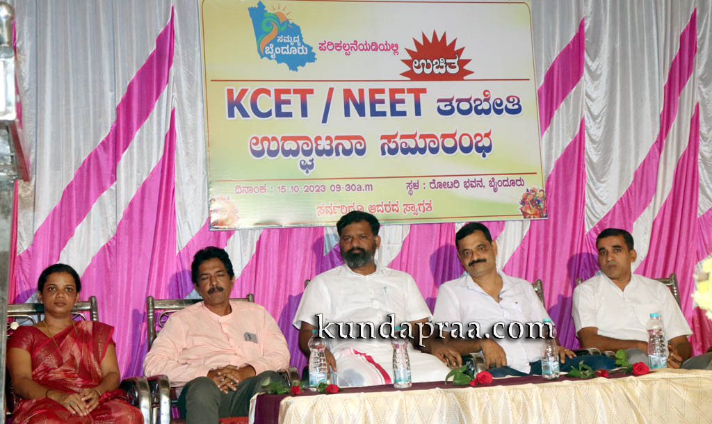 ಸುಮುಖ ಗ್ರೂಪ್ ಆಫ್ ಇಂಡಸ್ಟ್ರೀಸ್ನ ವ್ಯವಸ್ಥಾಪಕ ನಿರ್ದೇಶಕ ಸುರೇಶ್ ಶೆಟ್ಟಿ ಕಾರ್ಯಕ್ರಮದ ಅಧ್ಯಕ್ಷತೆ ವಹಿಸಿ ಮಾತನಾಡಿ ಎಸ್ಎಸ್ಎಲ್ಸಿ ಹಾಗೂ ಪಿಯುಸಿ ದಿನಗಳಲ್ಲಿ ಕಷ್ಟಪಟ್ಟು ಕಲಿಕೆಯಲ್ಲಿ ತೊಡಗಿಕೊಂಡರೆ ಜೀವನಪೂರ್ತಿ ನೆಮ್ಮದಿಯ ದಿನಗಳನ್ನು ಕಾಣಲು ಸಾಧ್ಯವಿದೆ. ಸಮೃದ್ಧ ಬೈಂದೂರು ಪರಿಕಲ್ಪನೆಯಲ್ಲಿ ಹಮ್ಮಿಕೊಳ್ಳಲಾಗಿರುವ ಉಚಿತ ಕೆಸಿಇಟಿ ಹಾಗೂ ನೀಟ್ ತರಬೇತಿಯಲ್ಲಿ ನುರಿತ ಉಪನ್ಯಾಸಕರು ಪಾಲ್ಗೊಳ್ಳಲಿದ್ದು, ವಿದ್ಯಾರ್ಥಿಗಳು ಇದರ ಸದುಪಯೋಗಪಡಿಸಿಕೊಳ್ಳಬೇಕಿದೆ. ವಿದ್ಯೆ, ಉದ್ಯೋಗ ಹಾಗೂ ಆರೋಗ್ಯ ಕ್ಷೇತ್ರದಲ್ಲಿ ಗುರುತರ ಬದಲಾವಣೆಯನ್ನು ತರಬೇಕೆಂಬ ಶಾಸಕರ ಕನಸನ್ನು ನನಸಾಗಿಸಲು ಬೈಂದೂರು ಕ್ಷೇತ್ರದ ನಾಗಕರಿಕರು ಜೊತೆಯಾಗಿ ನಿಲ್ಲಬೇಕಿದೆ ಎಂದರು.