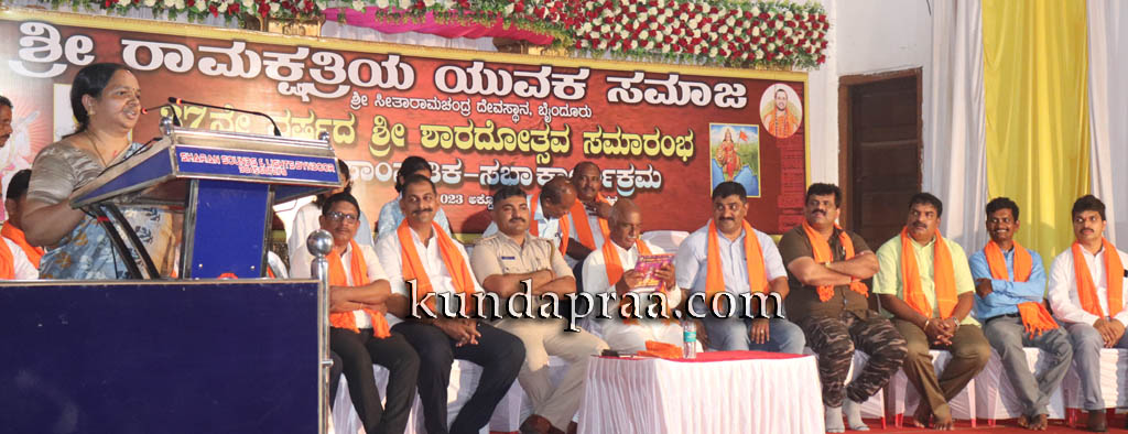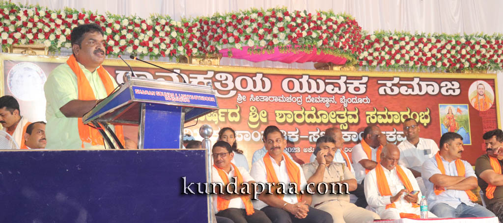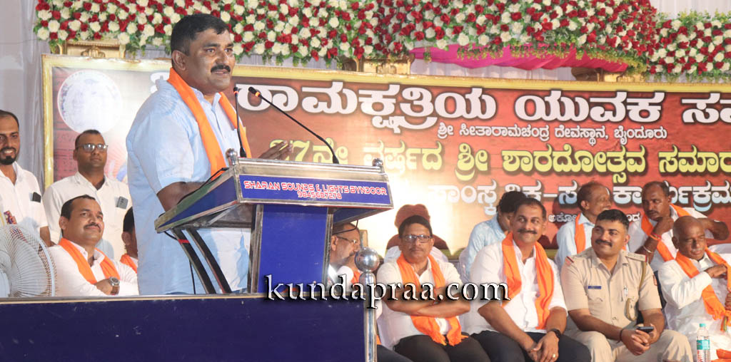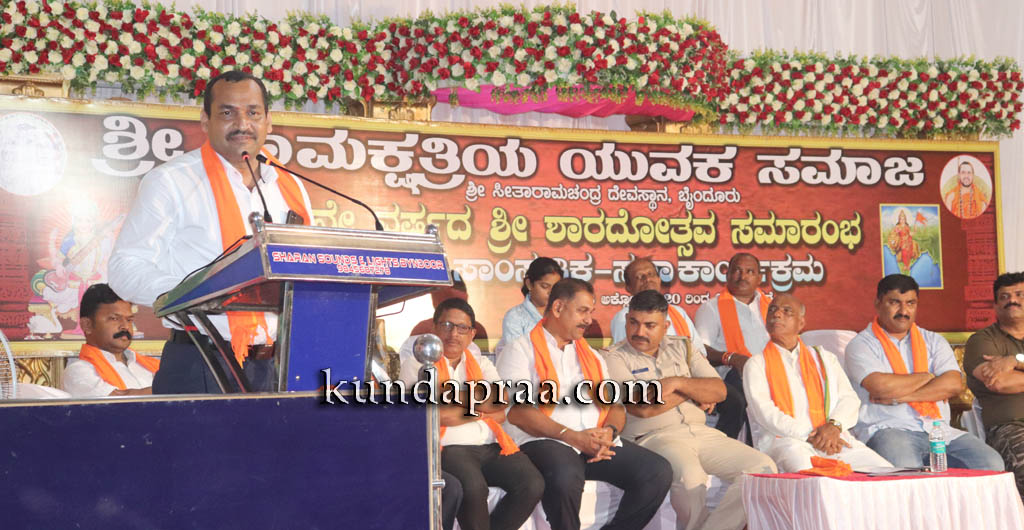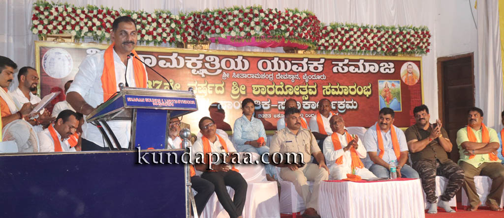 ಅವರು ಶ್ರೀ ರಾಮಕ್ಷತ್ರಿಯ ಯುವಕ ಮಂಡಲ ಶ್ರೀ ಸೀತಾರಾಮಚಂದ್ರ ದೇವಸ್ಥಾನದ ವತಿಯಿಂದ ಆಯೋಜಿಸಲಾಗುತ್ತಿರುವ 37ನೇ ವರ್ಷದ ಶಾರದೋತ್ಸವದಲ್ಲಿ ಶನಿವಾರ ನಡೆದ ಧಾರ್ಮಿಕ ಸಭಾ ಕಾರ್ಯಕ್ರಮದಲ್ಲಿ ಮಾತನಾಡಿ ಎಲ್ಲಾ ರಂಗದಲ್ಲಿ ಪ್ರಗತಿ ಸಾಧಿಸುವುದಷ್ಟೇ ಅಲ್ಲದೇ ಸಾಧನೆಗೈಯುವರ ಇತರರಿಗೂ ದಾರಿ ತೋರುವ ಕೆಲಸವನ್ನು ಸಮುದಾಯದ ನಾಯಕರು ಮಾಡಬೇಕಿದೆ. ಒಗ್ಗಟ್ಟಿನ ಹೋರಾಟ ಹಾಗೂ ಕೆಲಸಕ್ಕೆ ಯಾವಾಗಲು ಜಯ ಸಂದಿದೆ ಎಂದರು.