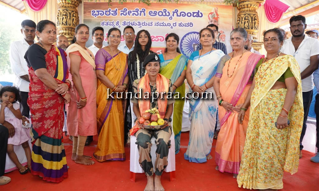ಕುಂದಾಪುರ: ಭಾರತದ ಗಡಿ ಭದ್ರತಾ ಪಡೆಗೆ ಸೇರ್ಪಡೆಗೊಂಡು, ಪಂಜಾಬ್ನ ಬಿಎಸ್ಎಫ್ ಶಿಬಿರದಲ್ಲಿ 11 ತಿಂಗಳ ಕಾಲ ತರಬೇತಿ ಮುಗಿಸಿ, ದೇಶದ ಗಡಿಯಲ್ಲಿ ಕರ್ತವ್ಯಕ್ಕೆ ನಿಯೋಜನೆಗೊಂಡು ಮೊದಲ ಬಾರಿಗೆ ಊರಿಗೆ ಆಗಮಿಸಿದ ಹೆಮ್ಮಾಡಿ ಸುನೀತಾ ಪೂಜಾರಿ ಅವರಿಗೆ ಊರವರ ಪರವಾಗಿ ಹೆಮ್ಮಾಡಿ ರಿಕ್ಷಾ ನಿಲ್ದಾಣದ ಬಳಿ ಆಯೋಜಿಸಲಾದ ಹುಟ್ಟೂರ ಸಮ್ಮಾನ ಕಾರ್ಯಕ್ರಮ ಆಯೋಜಿಸಲಾಗಿತ್ತು.
