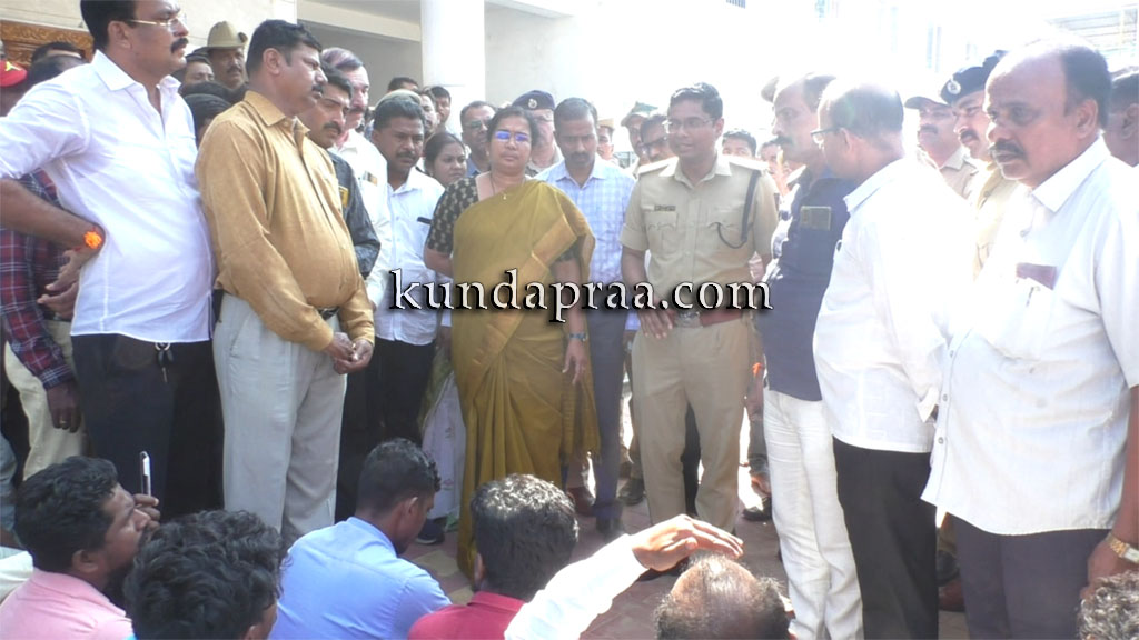 ಕುಂದಾಪುರ: ಇಲ್ಲಿನ ತಾಲೂಕು ಸರ್ಕಾರಿ ಆಸ್ಪತ್ರೆಯಲ್ಲಿ ಹೆರಿಗೆ ವೇಳೆ ಮಗು ಸಾವನ್ನಪ್ಪಿದ ಪ್ರಕರಣಕ್ಕೆ ಸಂಬಂಧಿಸಿದಂತೆ ಸೋಮವಾರ ಆರಂಭಗೊಂಡ ಪ್ರತಿಭಟನೆ ಮುಂದುವರಿದಿದ್ದು, ಮಂಗಳವಾರ ಉಡುಪಿ ಜಿಲ್ಲಾಧಿಕಾರಿ ಡಾ. ವಿದ್ಯಾಕುಮಾರಿ ಹಾಗೂ ಎಸ್ಪಿ ಡಾ. ಅರುಣ್ ಕೆ. ಅವರು ಭೇಟಿನೀಡಿ ಪ್ರತಿಭಟನಾಕಾರರನ್ನು ಸಮಾಧಾನಪಡಿಸಿದ್ದಾರೆ.