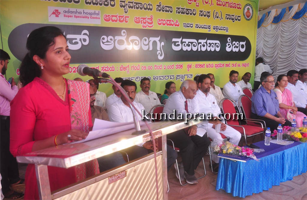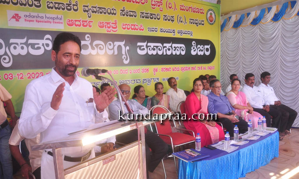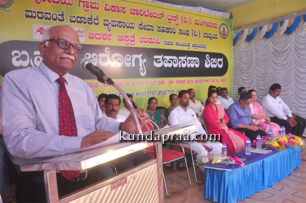 ಅವರು ನವೋದಯ ಗ್ರಾಮವಿಕಾಸ ಚಾರಿಟೇಬಲ್ ಟ್ರಸ್ಟ್ ಮಂಗಳೂರು, ಮರವಂತೆ ಬಡಾಕೆರೆ ವ್ಯವಸಾಯ ಸೇವಾ ಸಹಕಾರಿ ಸಂಘ ನಾವುಂದ ಹಾಗೂ ಆದರ್ಶ ಆಸ್ಪತ್ರೆ ಉಡುಪಿ ಸಹಯೋಗದಲ್ಲಿ ಭಾನುವಾರ ನಾವುಂದ ಸರಕಾರಿ ಹಿರಿಯ ಪ್ರಾಥಮಿಕ ಶಾಲಾ ಆವರಣದಲ್ಲಿ ಆಯೋಜಿಸಲಾಗಿದ್ದ ಬೃಹತ್ ಉಚಿತ ಆರೋಗ್ಯ ತಪಾಸಣಾ ಶಿಬಿರವನ್ನು ಉದ್ಘಾಟಿಸಿ ಮಾತನಾಡಿದರು.