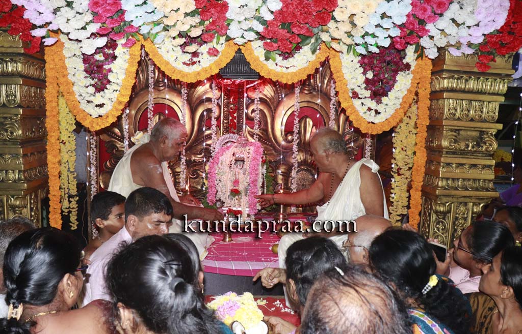 ಭಾನುವಾರದಿಂದ ದೇವಳದಲ್ಲಿ ಪುಣ್ಯಾಹ ವಾಚನ, ದೇವನಾಂದಿ, ದ್ವಾದಶ ನಾರಿಕೇಳ ಮಹಾ ಗಣಪತಿ ಹೋಮ, ಸಂಪೂರ್ಣ ನವಗ್ರಹ ಹೋಮ, ದುರ್ಗಾ ಹೋಮ ಸಹಿತ ಲೋಕಕಲ್ಯಾಣಾರ್ಥವಾಗಿ ಸದ್ಯೋಜಾತಾದಿ ಅಧಿವಾಸ ಯಾಗ, ಪೂರ್ಣಾಹುತಿ ಬ್ರಹ್ಮಕಲಶಾಭಿಷೇಕ, ಮಹಾಪೂಜೆ ಮೊದಲಾದ ಧಾರ್ಮಿಕ ಕಾರ್ಯಕ್ರಮಗಳು ನಡೆದವು. ಮಧ್ಯಾಹ್ನ ಮಹಾ ಅನ್ನಸಂತರ್ಪಣೆ ನಡೆಯಿತು. ಬಳಿಕ ಸಂಜೆ ಸಾಲಿಗ್ರಾಮ ಮಕ್ಕಳ ಮಹಿಳಾ ಕೋಟ ಇವರಿಂದ ವೀರಶ ಸೇನಾ ಯಕ್ಷಗಾನ ಕಾರ್ಯಕ್ರಮ ನಡೆಯಿತು.