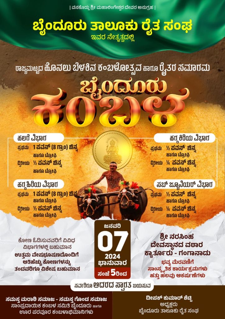 ಬೈಂದೂರು ಕಂಬಳ ಸಮಿತಿಯ ಗಣಪ ಮರಾಠಿ ಮಾತನಾಡಿ, ಕಂಬಳಕ್ಕಾಗಿ ಹೊಸತಾಗಿ ಕಂಬಳಗದ್ದೆ ಸಜ್ಜಾಗುತ್ತಿದೆ. ಗ್ರಾಮೀಣ ಭಾಗದ ಕೆಸರುಗದ್ದೆಯಲ್ಲಿ ಸಾಂಪ್ರದಾಯಿಕ ಕಂಬಳವನ್ನು ನೋಡುವುದೇ ಚಂದ. ರೈತರು ಹಾಗೂ ಪ್ರಾಣಿಗಳ ಸಬಂಧವನ್ನು ತೋರಿಸುವ ಕಂಬಳ ಇದಾಗಲಿದೆ ಎಂದರು.