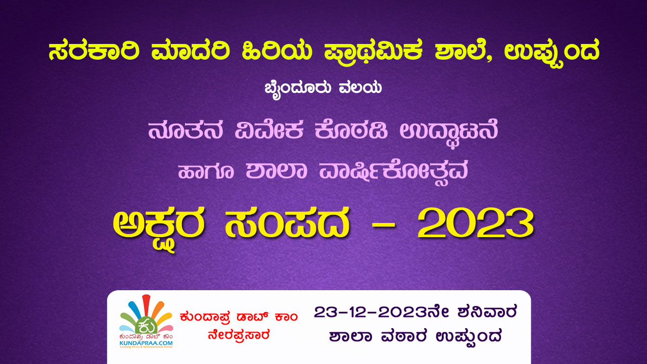 ಅಕ್ಷರ ಸಂಪದ | ಸರಕಾರಿ ಮಾದರಿ ಹಿ.ಪ್ರಾ. ಶಾಲೆ, ಉಪ್ಪುಂದ | ನೂತನ ವಿವೇಕ ಕೊಠಡಿ ಉದ್ಘಾಟನೆ ಹಾಗೂ ಶಾಲಾ ವಾರ್ಷಿಕೋತ್ಸವ