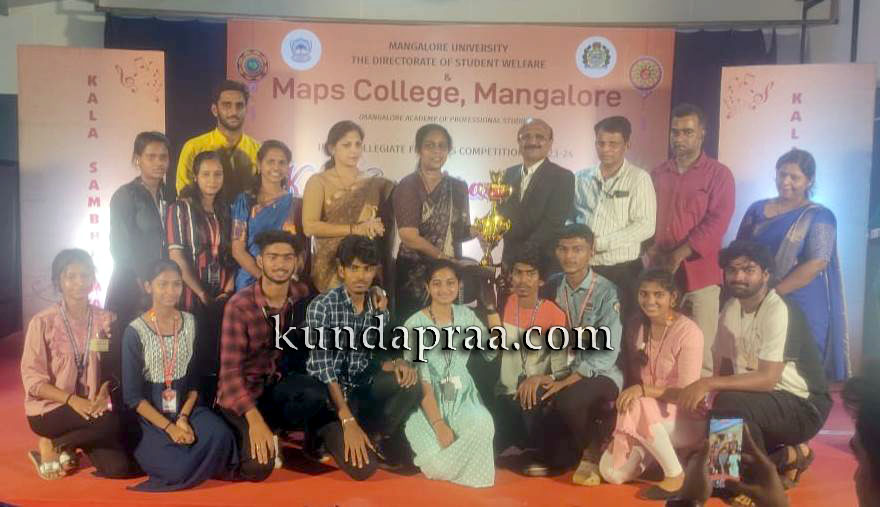 ಕುಂದಾಪುರ: ಮಂಗಳೂರಿನ ಮ್ಯಾಪ್ಸ್ ಕಾಲೇಜು ಹಾಗೂ ಮಂಗಳೂರು ವಿಶ್ವವಿದ್ಯಾನಿಲಯದ ಜಂಟಿ ಆಶ್ರಯದಲ್ಲಿ ನಡೆದ ಅಂತರ್-ಕಾಲೇಜು ಮಟ್ಟದ ಲಲಿತಕಲಾ ಸ್ಪರ್ಧೆಯಲ್ಲಿ ಡಾ| ಬಿ. ಬಿ. ಹೆಗ್ಡೆ ಪ್ರಥಮ ದರ್ಜೆ ಕಾಲೇಜು ದ್ವಿತೀಯ ಸಮಗ್ರ ಪ್ರಶಸ್ತಿಯನ್ನು ಪಡೆದುಕೊಂಡಿದೆ.