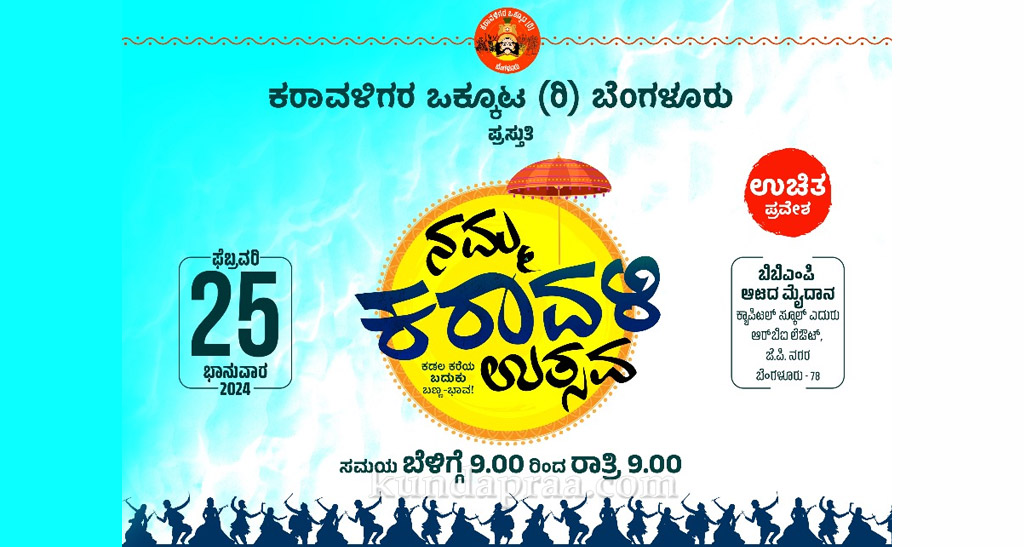 ಬೆಂಗಳೂರು: ಕರಾವಳಿಗರ ಒಕ್ಕೂಟ ರಿ. ಬೆಂಗಳೂರು ಇವರ ಆಶ್ರಯದಲ್ಲಿ ಅದ್ದೂರಿ ಕಾರ್ಯಕ್ರಮವೊಂದು ಕಳೆಗಟ್ಟುತ್ತಿದೆ. ಕರಾವಳಿಯ ಸೊಗಡು, ಸಂಸ್ಕೃತಿ, ಖಾದ್ಯ, ವ್ಯಕ್ತಿ ವಿಶೇಷಗಳನ್ನೊಳಗೊಂಡು ಸಮಾರಂಭ ‘ನಮ್ಮ ಕರಾವಳಿ ಉತ್ಸವ’ ಜೆ.ಪಿ ನಗರದ ಆರ್.ಬಿ.ಐ ಲೇಔಟ್ ಬಿಬಿಎಂಪಿ ಆಟದ ಮೈದಾನದಲ್ಲಿ ಫೆಬ್ರುವರಿ 25 ರ ಭಾನುವಾರ ಬೆಳಿಗ್ಗೆ 9 ಗಂಟೆಯಿಂದ ರಾತ್ರಿ 9ರ ವರೆಗೆ ನಡೆಯಲಿದೆ.