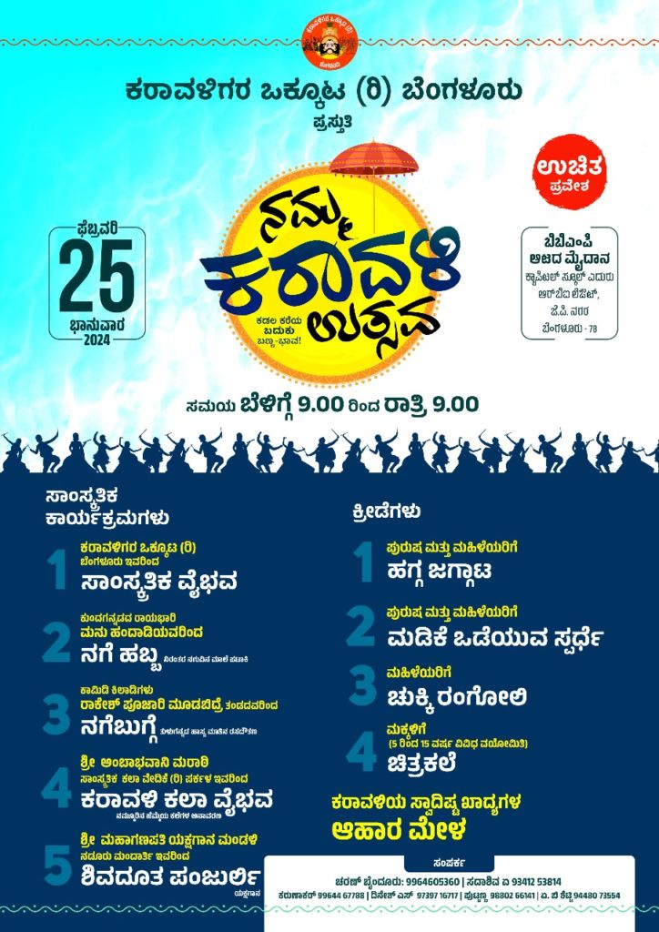 ಬೆಳಿಗ್ಗೆಯಿಂದ ರಾತ್ರಿಯ ತನಕ ಸಾಗುವ ಕಾರ್ಯಕ್ರಮದಲ್ಲಿ ಕರಾವಳಿಯ ಸೊಗಬನ್ನು ಒಳಗೊಂಡ ವಿವಿಧ ಸಾಂಸ್ಕ್ರತಿಕ ಕಾರ್ಯಕ್ರಮ, ಸ್ಪರ್ಧೆ, ಗ್ರಾಮೀಣ ಕ್ರೀಡೆಗಳು ನಡೆಯಲಿದ್ದು, ಕರಾವಳಿಯ ಸ್ವಾದಿಷ್ಟ ಖಾದ್ಯಗಳ ಆಹಾರ ಮೇಳ, ಕರಾವಳಿ ಸೊಗಡಿನ ಅಪರೂಪದ ವಸ್ತುಗಳ ಮಾರಾಟ ಮಳಿಗೆ , ಬೆಂಗಳೂರಿನಲ್ಲಿರುವ ಕಡಲೂರಿಗರ ಮಹಾ ಸಮ್ಮಿಲನ ನಡೆಯಲಿದ್ದು, ಕರಾವಳಿಯ, ಸಾಧಕರು, ಜನನಾಯಕರು, ಉದ್ಯಮಿಗಳು , ಕರಾವಳಿಯ ಸಿನಿ ತಾರೆಯರು ಭಾಗವಹಿಸುತ್ತಿದ್ದಾರೆ.