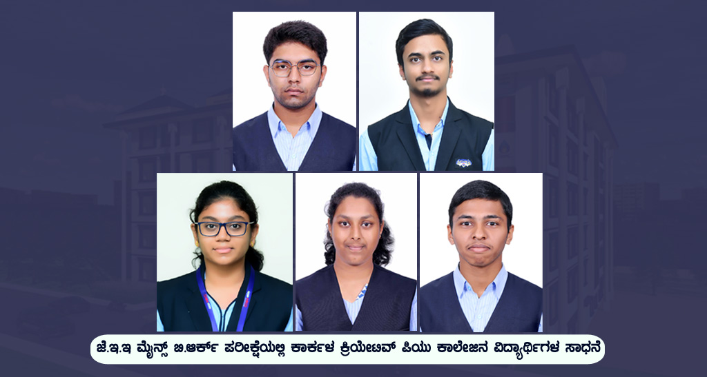 ಜನವರಿ ತಿಂಗಳಿನಲ್ಲಿ ನಡೆದ ಜೆ.ಇ.ಇ ಮೈನ್ಸ್ ಪರೀಕ್ಷೆಯಲ್ಲಿಯೂ ಕ್ರಿಯೇಟಿವ್ ನ 26 ವಿದ್ಯಾರ್ಥಿಗಳು 97 ಕ್ಕಿಂತ ಹೆಚ್ಚು ಪರ್ಸಂಟೈಲ್ ಗಳಿಸಿರುವುದನ್ನು ಗಮನಿಸಬಹುದಾಗಿದೆ.