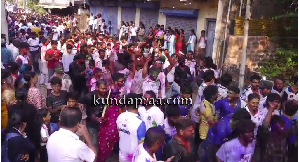 ಸಾಂಪ್ರದಾಯಿಕ ಗುಮಟೆ ವಾದನದೊಂದಿಗೆ ದೇವಳಕ್ಕೆ ಆಗಮಿಸಿದ ಭಕ್ತರು, ಸಂಜೆಯ ವೇಳೆಗೆ ಕುಂದಾಪುರ ಪ್ರಮುಖ ಬೀದಿಗಳಲ್ಲಿ ಸಂಚರಿಸಿ ಹೋಳಿ ಹಬ್ಬವನ್ನು ಸಂಭ್ರಮಿಸಿದರು.