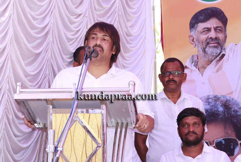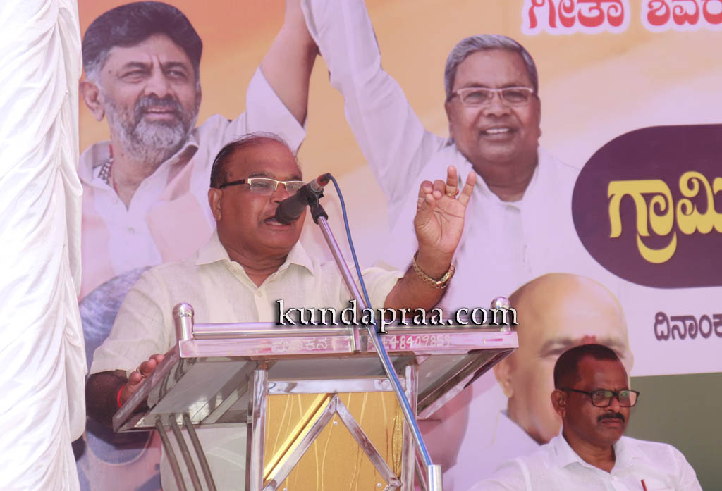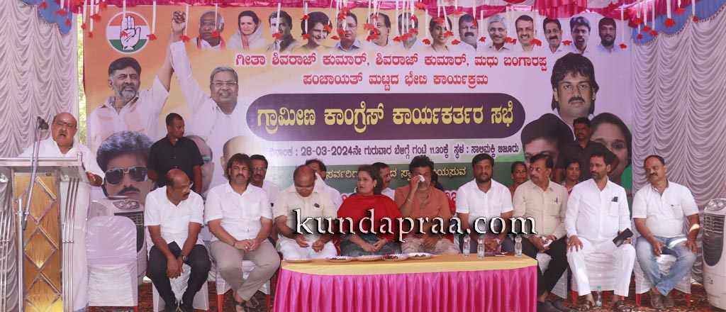 ಅವರು ಬೈಂದೂರು – ಶಿವಮೊಗ್ಗ ಲೋಕಸಭಾ ಕ್ಷೇತ್ರದ ಚುನಾವಣೆಗೆ ಪೂರ್ವಭಾವಿಯಾಗಿ ಬಿಜೂರು ಸಾಲಿಮಕ್ಕಿಯಲ್ಲಿ ಗುರುವಾರ ಜರುಗಿದ ಗ್ರಾಮೀಣ ಕಾಂಗ್ರೆಸ್ ಕಾರ್ಯಕರ್ತರ ಸಭೆಯಲ್ಲಿ ಮಾತನಾಡಿ ದಿವಂಗತ ಎಸ್. ಬಂಗಾರಪ್ಪನವರು ಮುಖ್ಯಮಂತ್ರಿಯಾಗಿದ್ದಾಗ ರಾಜ್ಯದ ಜನರಿಗಾಗಿ ನೀಡಿದ ಕೊಡುಗೆಗಳು ಇಂದಿಗೂ ಜಾರಿಯಲ್ಲಿದೆ. ರಾಜ್ಯ ಕಾಂಗ್ರೆಸ್ ಸರಕಾರದ ನೀಡಿದ ಗ್ಯಾರೆಂಟಿ ಯೋಜನೆಗಳು ಪ್ರತಿ ಮನೆಯನ್ನೂ ತಲುಪಿದೆ. ಗೀತಾ ಶಿವರಾಜಕುಮಾರ್ ಅವರನ್ನು ನಿಮ್ಮ ಮಡಿಲಿಗೆ ಹಾಕಿದ್ದೇವೆ. ಅವರನ್ನು ಗೆಲ್ಲಿಸುವ ಮೂಲಕ ಋಣ ತೀರಿಸಿ ಎಂದರು.