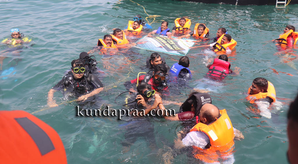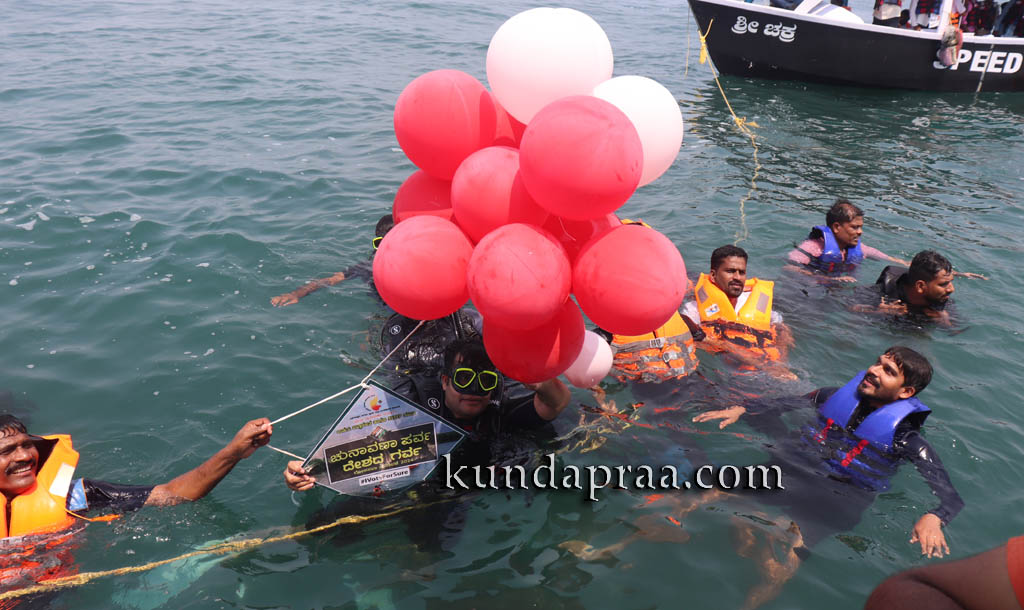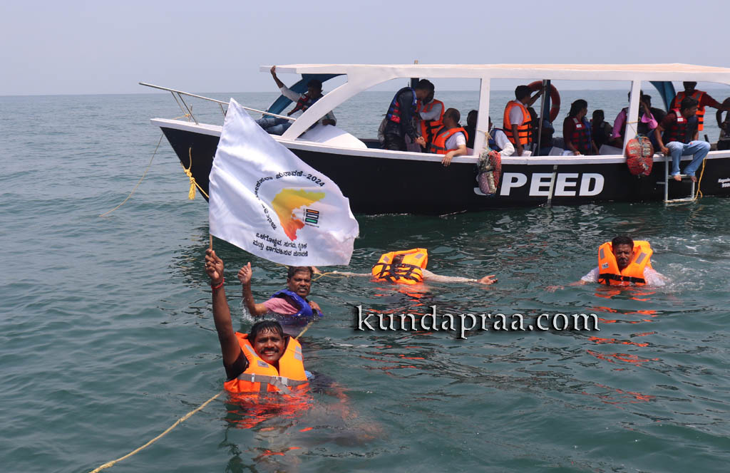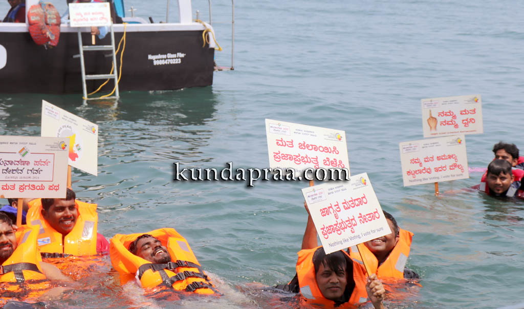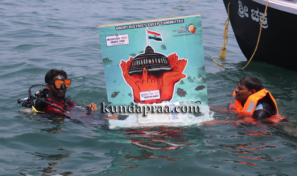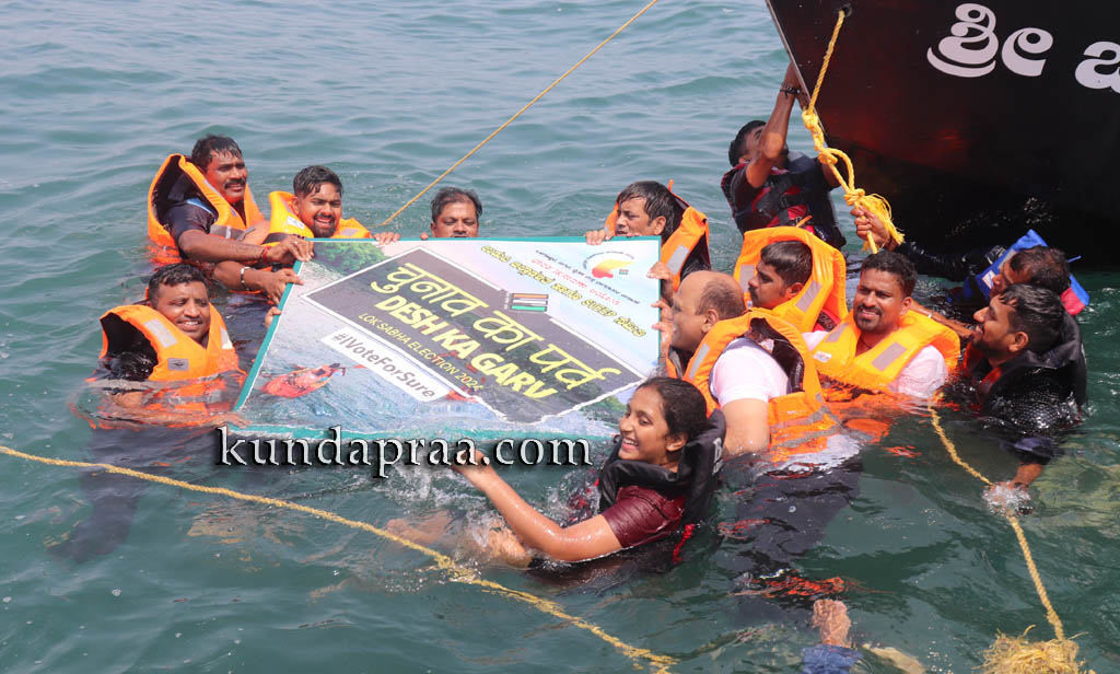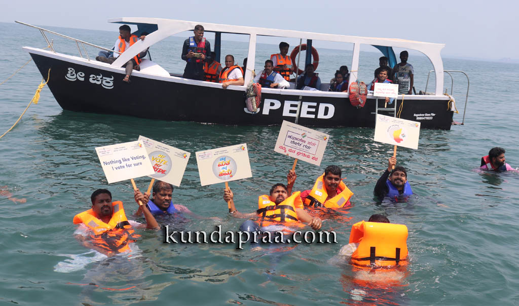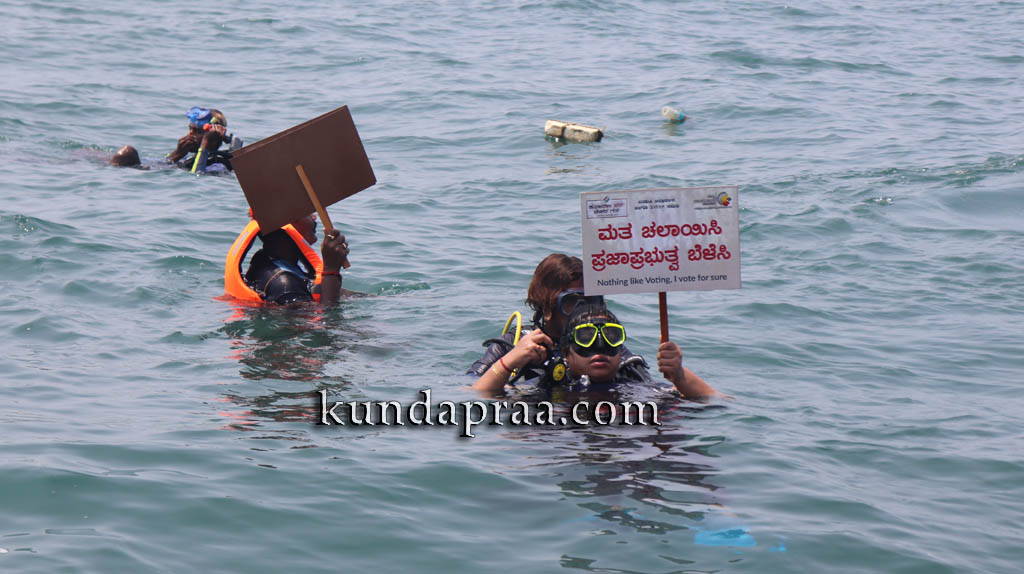 ಉದ್ಘಾಟನಾ ಕಾರ್ಯಕ್ರಮದ ಬಳಿಕ ಜಿಲ್ಲಾಧಿಕಾರಿಗಳು ಸೇರಿದಂತೆ ವಿವಿಧ ಇಲಾಖಾ ಅಧಿಕಾರಿಗಳು ಹಾಗೂ ಸಿಬ್ಬಂದಿಗಳು ಶಿರೂರಿನಿಂದ ನಾಯ್ಕನಕಲ್ಲು ಸ್ಕೂಬಾ ಡೈವಿಂಗ್ ಪ್ರದೇಶಕ್ಕೆ ತೆರಳಿ ವಿನೂತನವಾಗಿ ಮತದಾನ ಜಾಗೃತಿ ಅಭಿಯಾನದಲ್ಲಿ ಪಾಲ್ಗೊಂಡರು. ಸಮುದ್ರದ ಮಧ್ಯೆಯೇ ಜಿಲ್ಲಾಧಿಕಾರಿಗಳು ಪ್ರತಿಜ್ಞಾ ವಿಧಿ ಭೋದಿಸಿದರು. ಜಿಲ್ಲಾ ಪಂಚಾಯತ್ ಸಿಇಓ, ಅಪರ ಜಿಲ್ಲಾಧಿಕಾರಿ ಹಾಗೂ ಸಹಾಯಕ ಆಯುಕ್ತೆ ಅವರುಗಳು ಸ್ಕೂಭಾ ಡೈವಿಂಗ್ ಮೂಲಕ ತೆರಳಿ ಮತದಾನ ಜಾಗೃತಿಯ ಬಿತ್ತಿಪತ್ರಗಳನ್ನು ಪ್ರದರ್ಶಿಸಿದರು. ಮತದಾನ ಜಾಗೃತಿ ಬೋರ್ಡುಗಳನ್ನು ಪ್ರದರ್ಶಿಸಲಾಯಿತು.