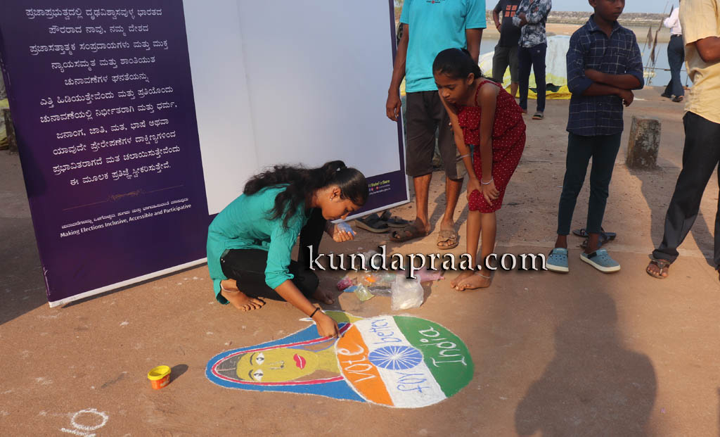 ಮತದಾನ ಜಾಗೃತಿಗೆ ಸಂಬಂಧಿಸಿದಂತೆ ಶಿರೂರಿನ ಮಹಿಳೆಯರು ಲಂಗರು ಪ್ರದೇಶದಲ್ಲಿ ವಿವಿಧ ರಂಗೋಲಿಗಳನ್ನು ಬಿಡಿಸಿದ್ದು ಗಮನ ಸೆಳೆಯಿತು.