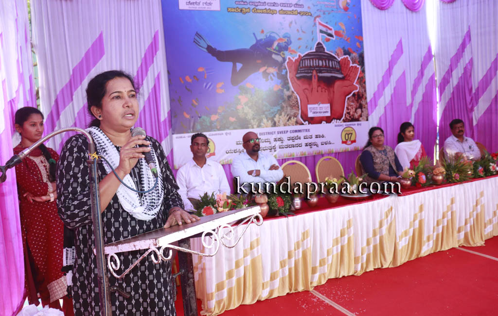 ಬೈಂದೂರು: ಪ್ರಜಾಪ್ರಭುತ್ವಕ್ಕೆ ಚುನಾವಣೆಯೇ ತಳಪಾಯ. ಈ ಪ್ರಕ್ರಿಯೆ ಪಾರದರ್ಶಕವಾಗಿ ನಡಿಯಬೇಕು ಮತ್ತು ಎಲ್ಲರೂ ಭಾಗವಹಿಸುವಂತಾಗಬೇಕು. ಜನರು ಊರ ಹಬ್ಬವನ್ನು ಉತ್ಸಾಹದಿಂದ ಆಚರಿಸುವಂತೆ ಮತದಾನವೂ ಆಗಬೇಕು ಎಂಬುದು ನಮ್ಮ ಉದ್ದೇಶ ಎಂದು ಜಿಲ್ಲಾಧಿಕಾರಿ ಡಾ. ವಿದ್ಯಾಕುಮಾರಿ ಐಎಎಸ್ ಹೇಳಿದರು.